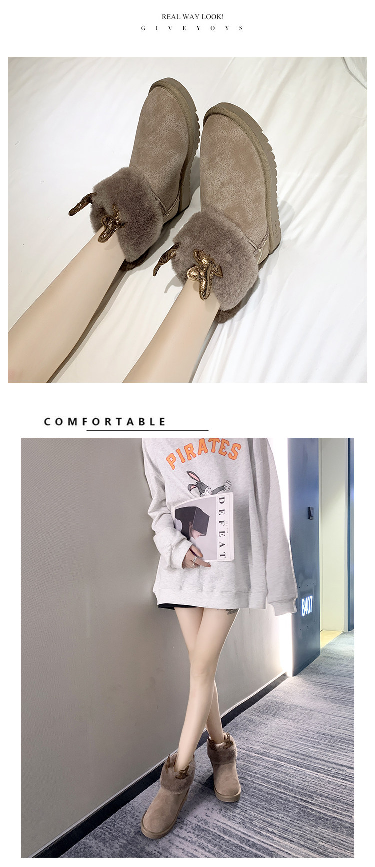 Обувь, флисовые нескользящие милые сапоги, 2019, в корейском стиле