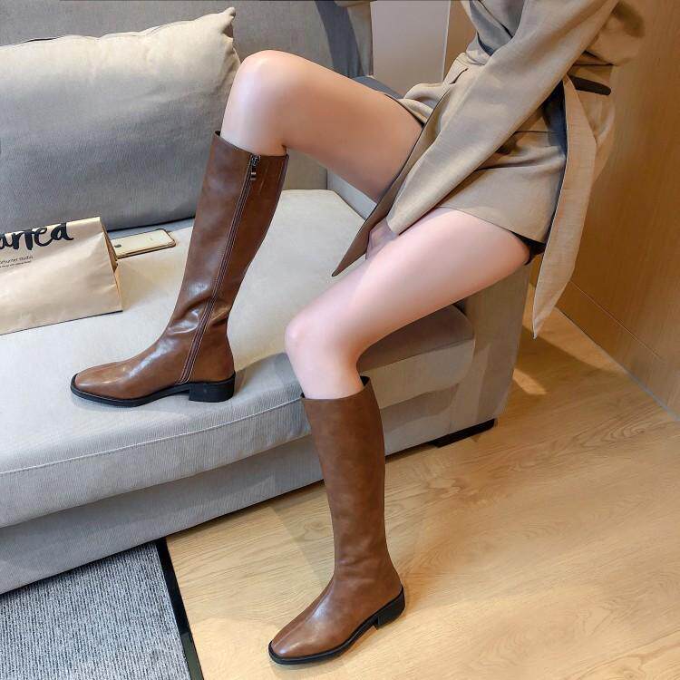 Утепленные коричневые кожаные зимние высокие сапоги, из натуральной кожи