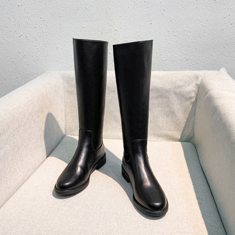 Флисовые высокие сапоги в английском стиле, по фигуре, из натуральной кожи, коллекция 2023