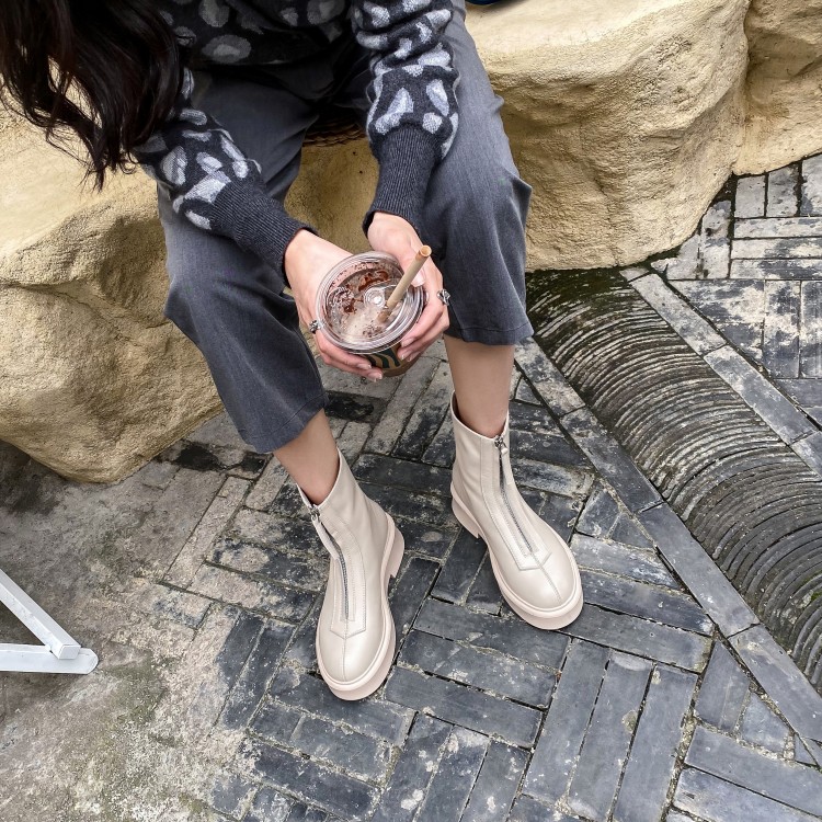 Martens, модные короткие сапоги на платформе с молнией, универсальные челси, обувь, из натуральной кожи