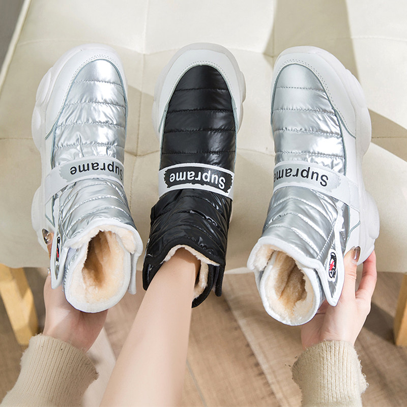 Нескользящие утепленные зимние сапоги на платформе с пухом, 2019