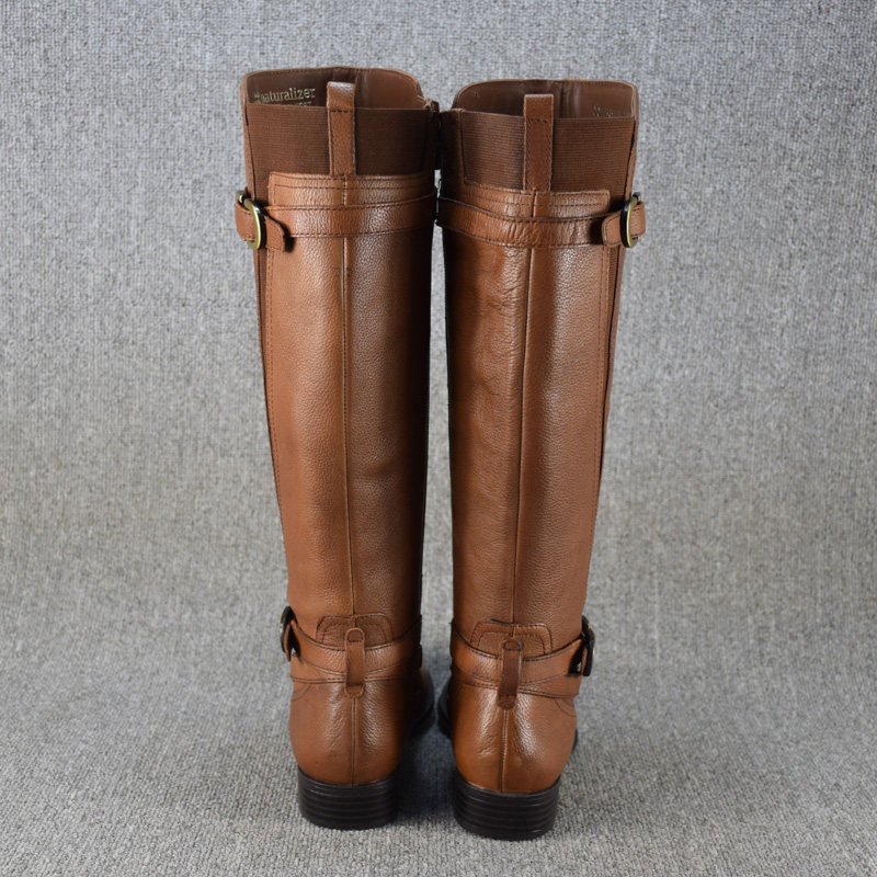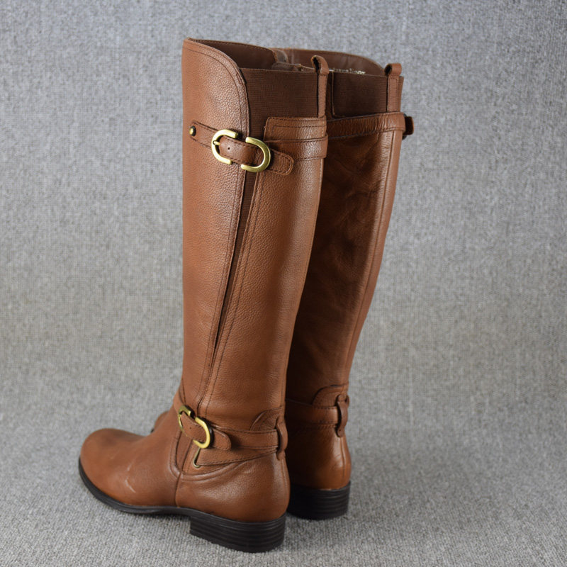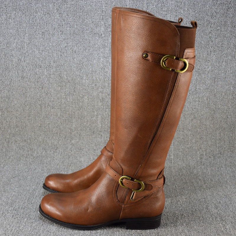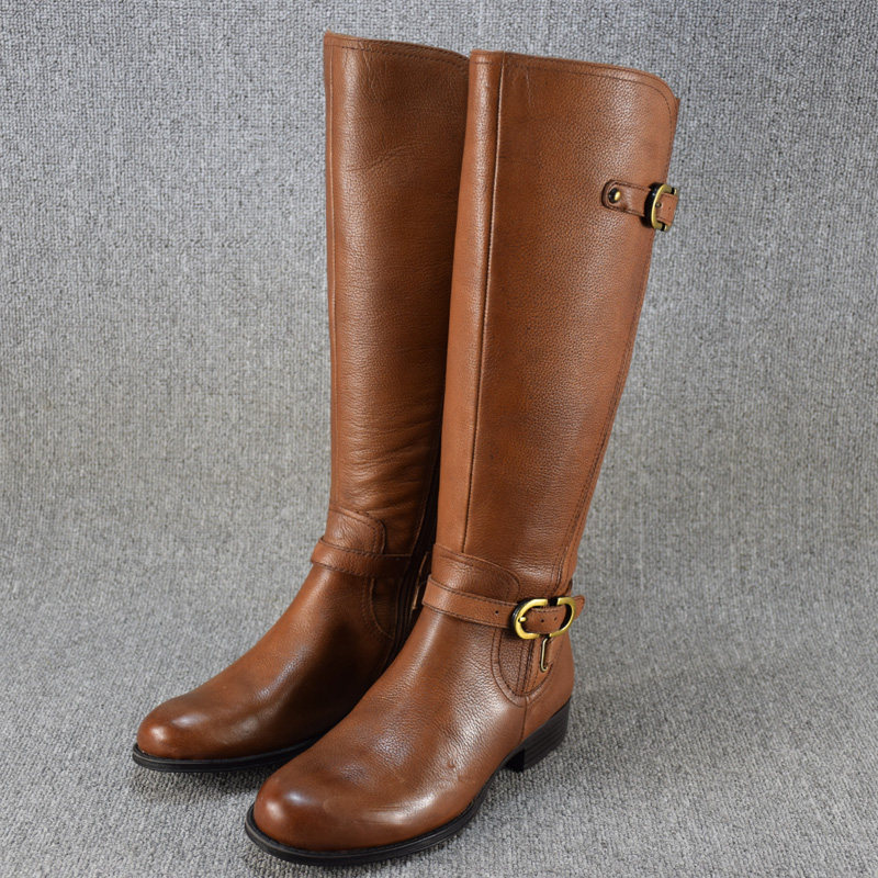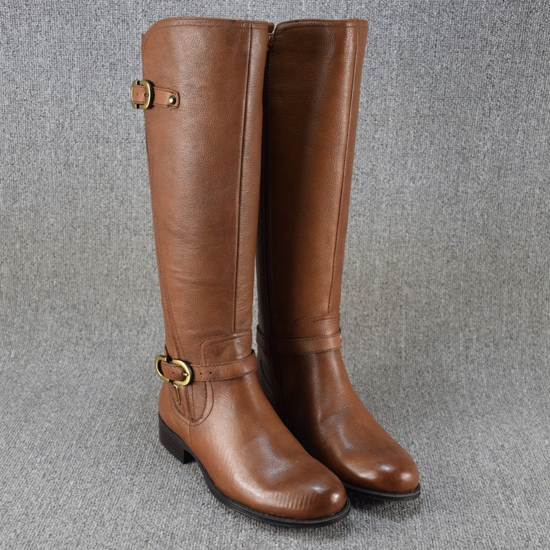 Универсальные демисезонные высокие сапоги, ботинки на плоской подошве, большой размер, из натуральной кожи