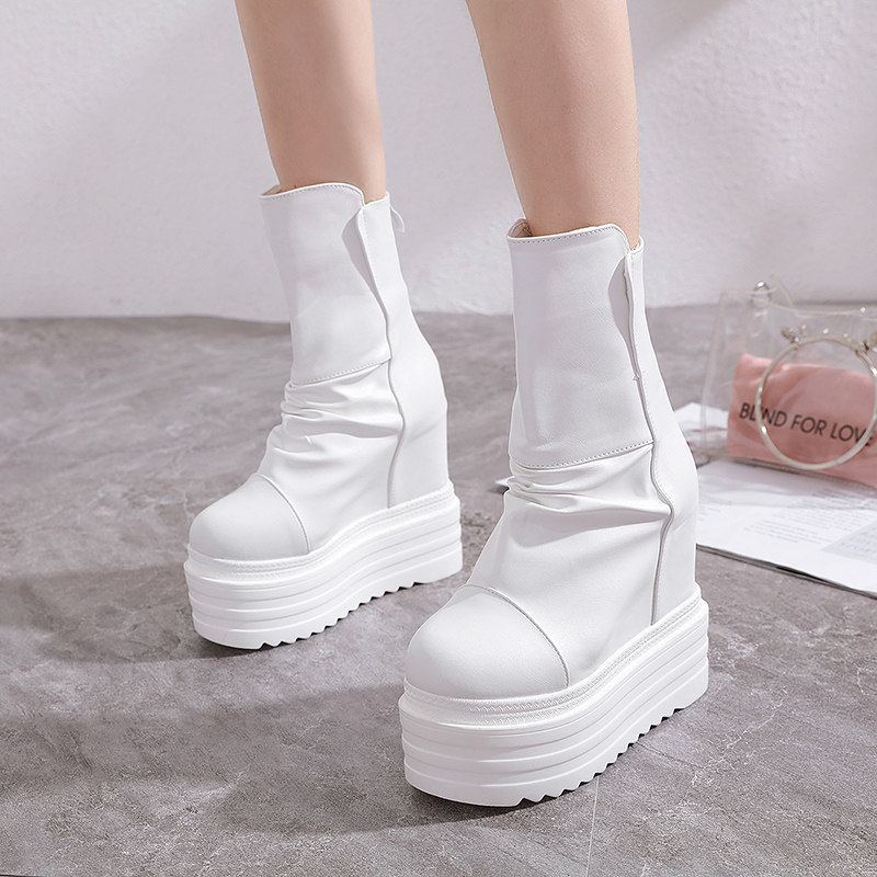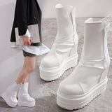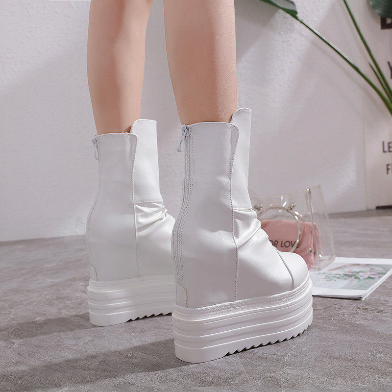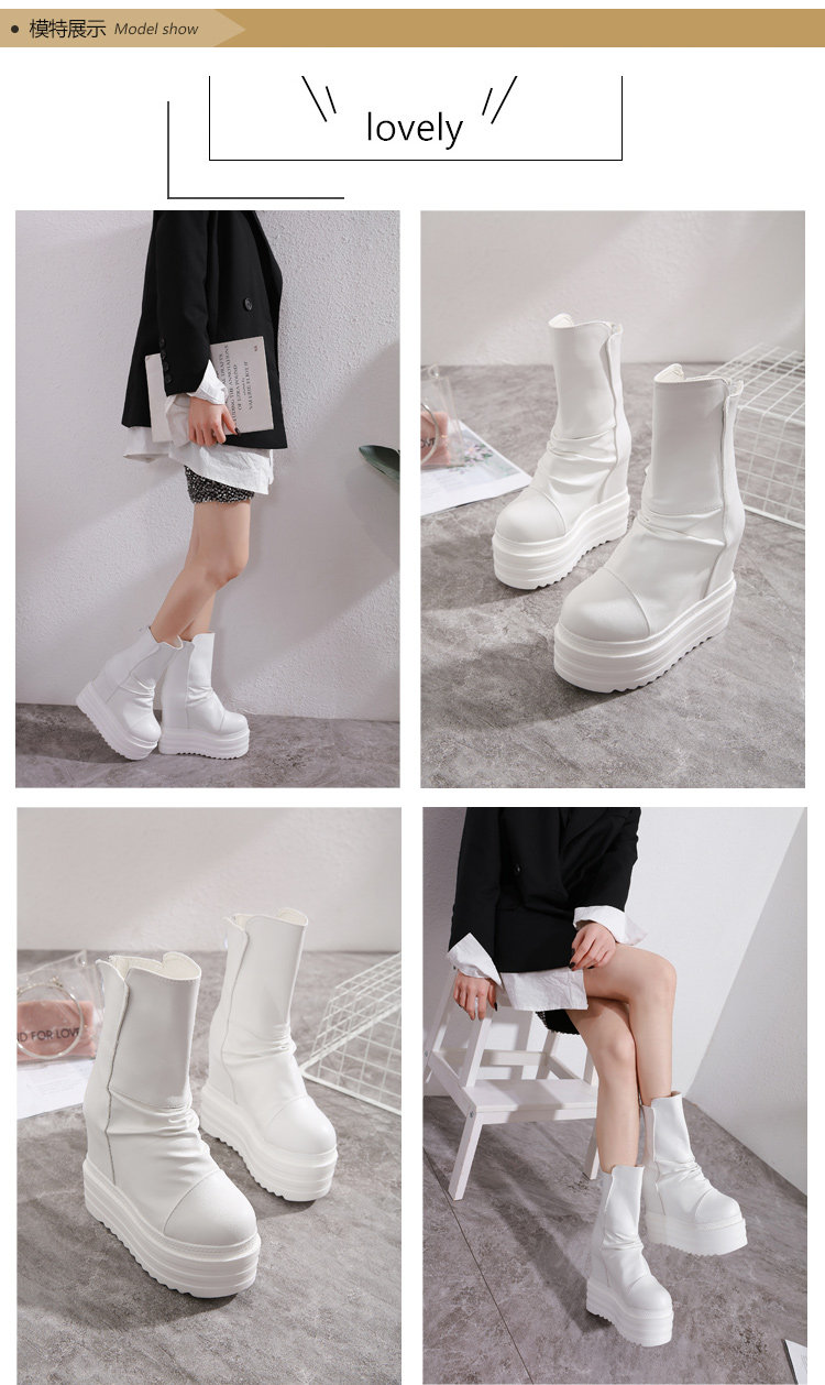 Модные белые зимние утепленные короткие сапоги, ботинки, средней длины