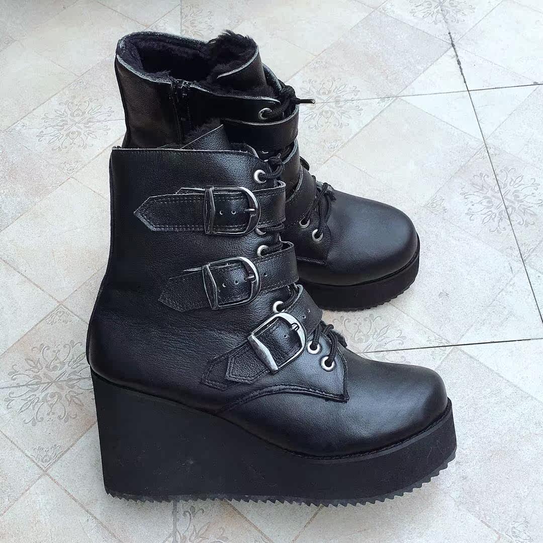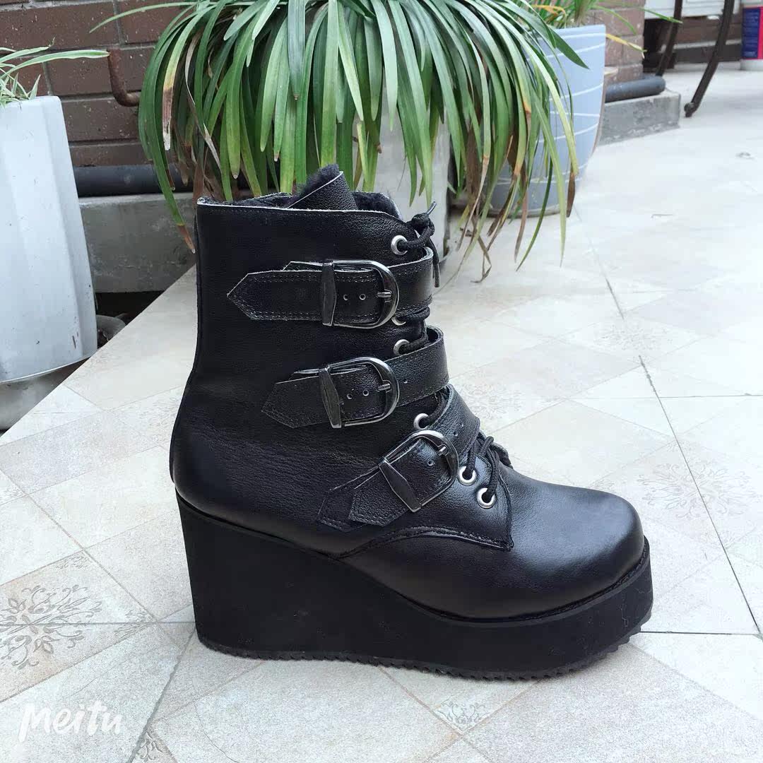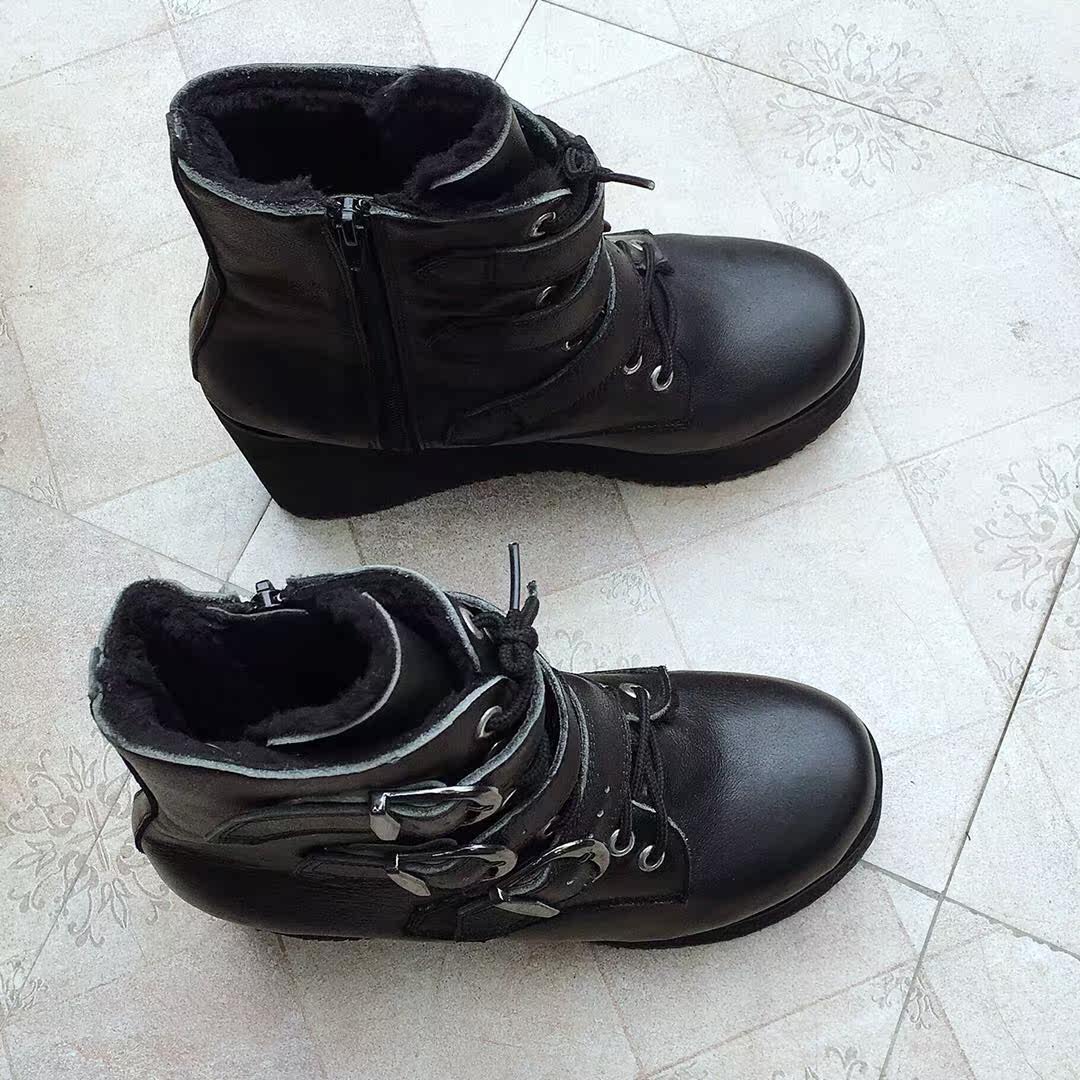 antaina Обувь на платформе, короткие сапоги для кожаной обуви, европейский стиль, из натуральной кожи