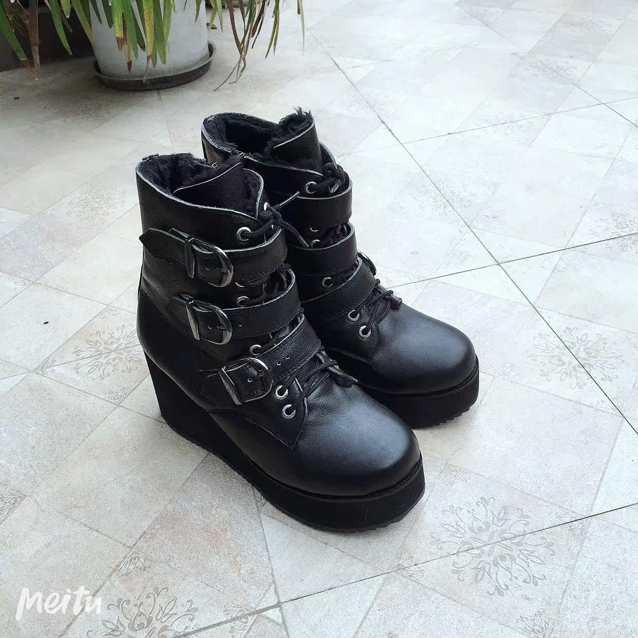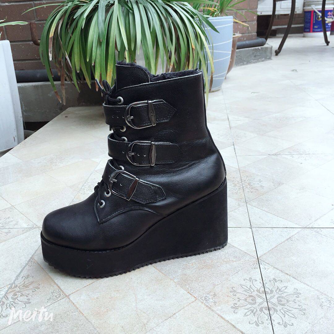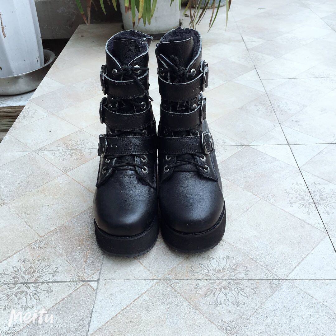 antaina Обувь на платформе, короткие сапоги для кожаной обуви, европейский стиль, из натуральной кожи