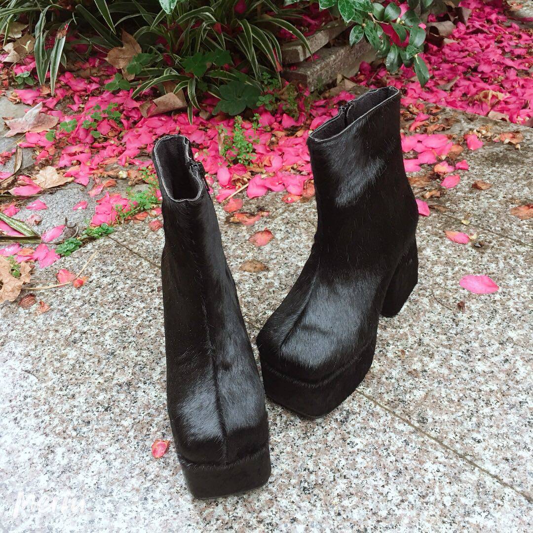 Antaina туфли на платформе туфли на платформе туфли на платформе из натуральной кожи туфли из конского волоса с квадратным носком теплые ботинки Челси короткие сапоги 7801