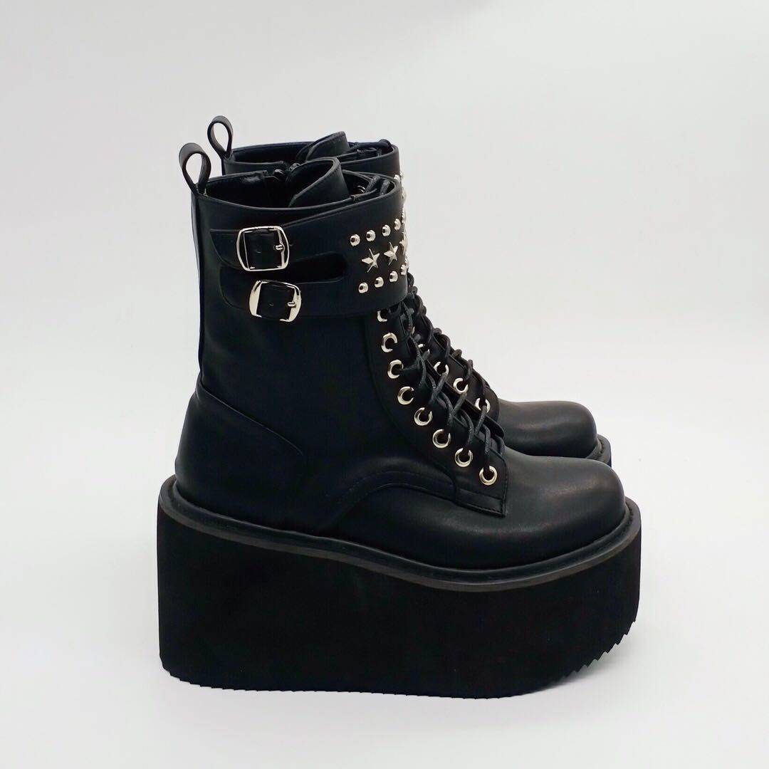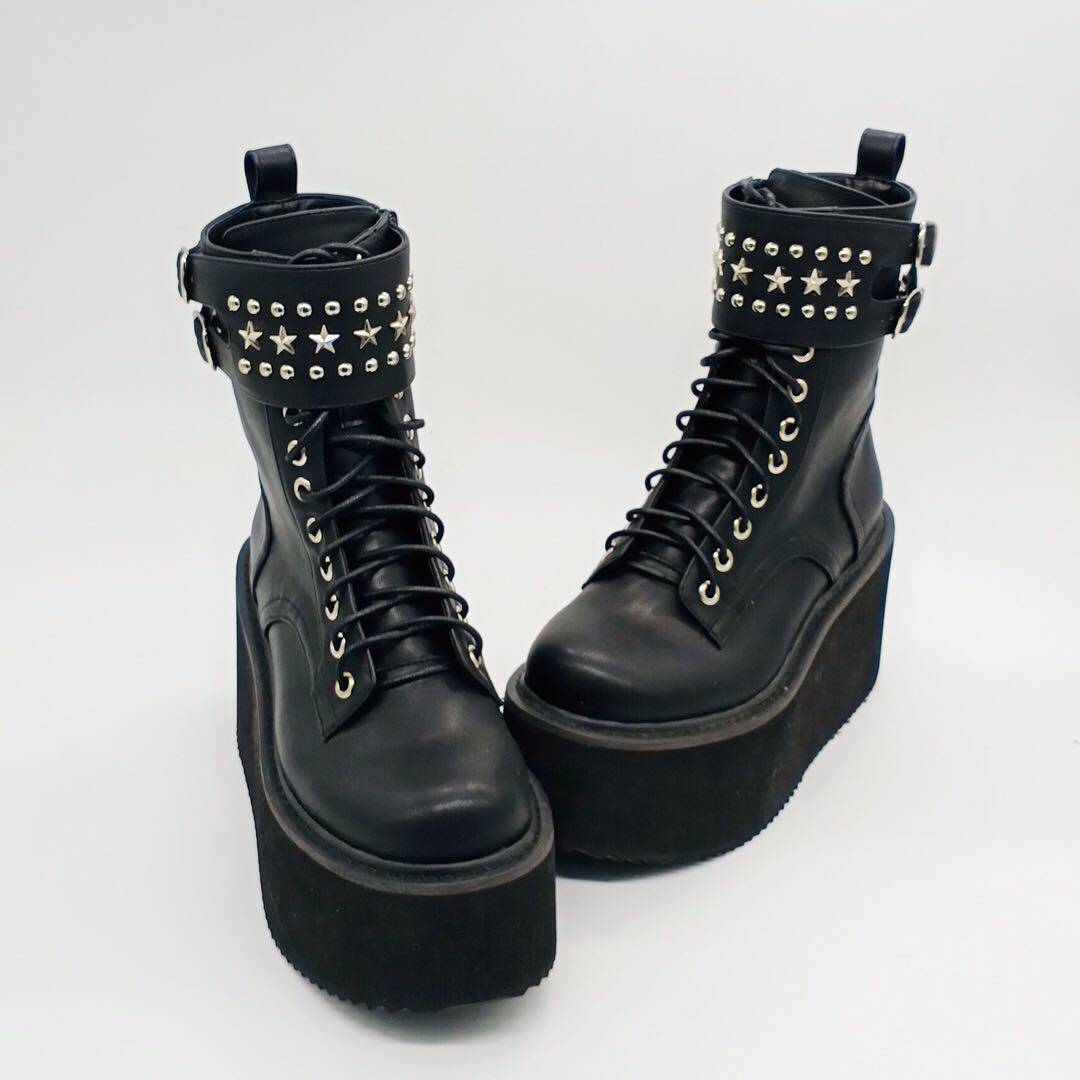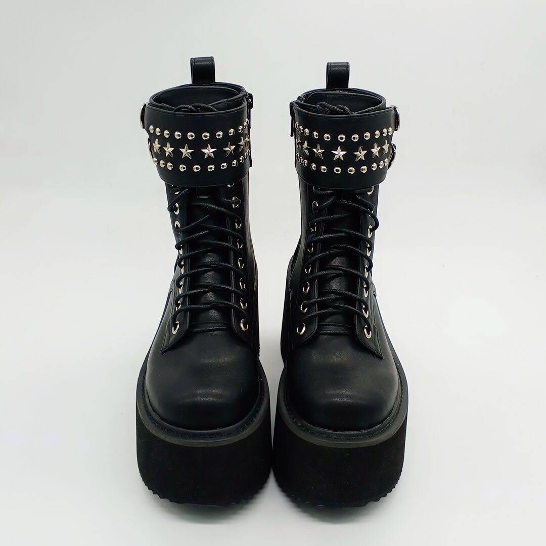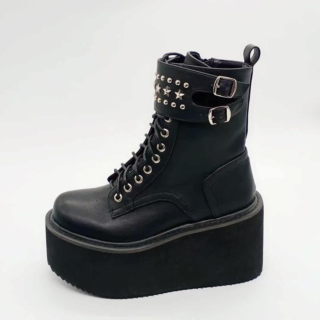 Оригинальный владелец магазина Antaina Real Shoot Loase The Cake Shouse Толкие подошва ботинки, ботинки для звездных заклепков, панк -женские туфли
