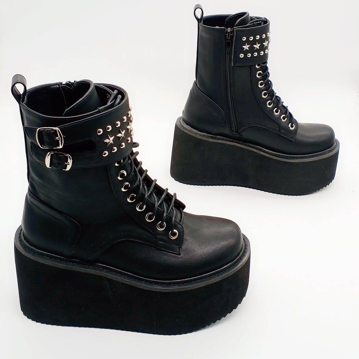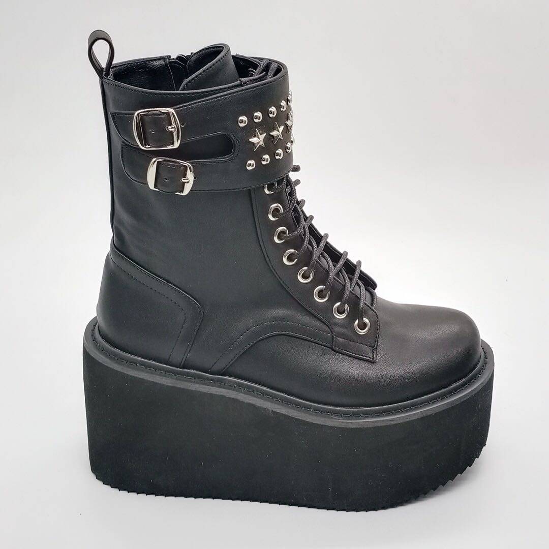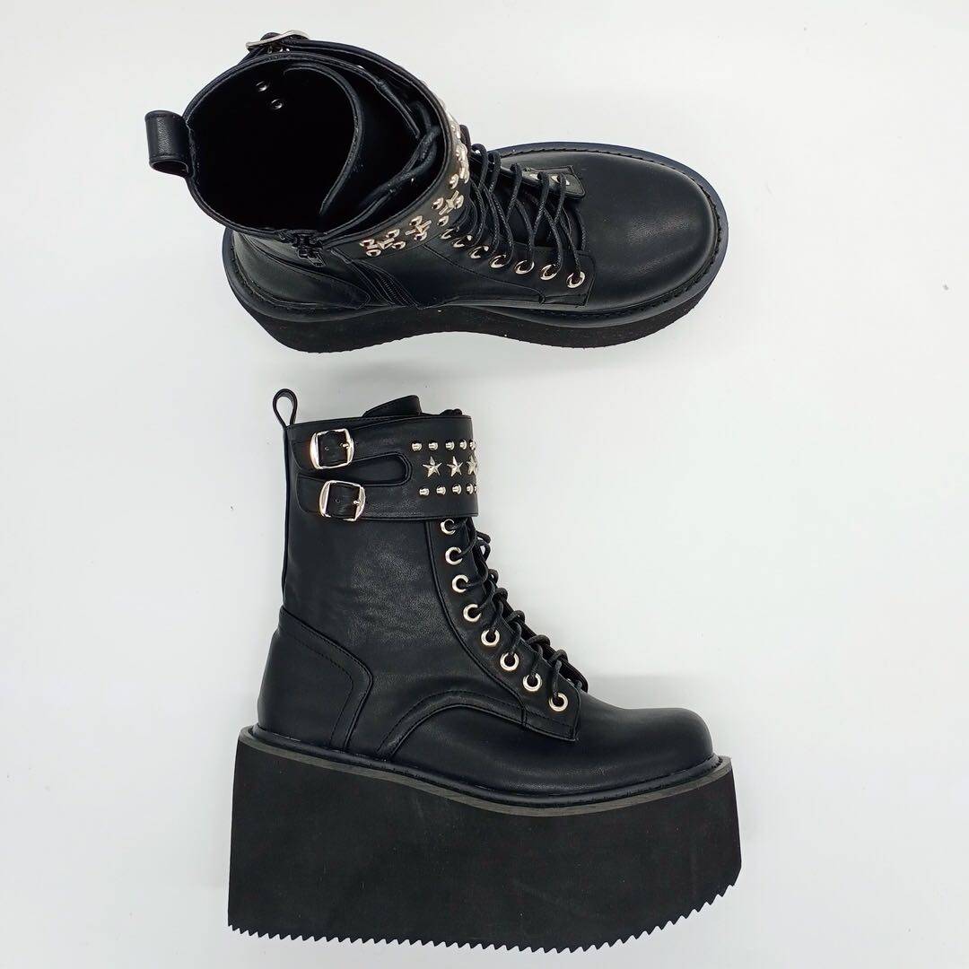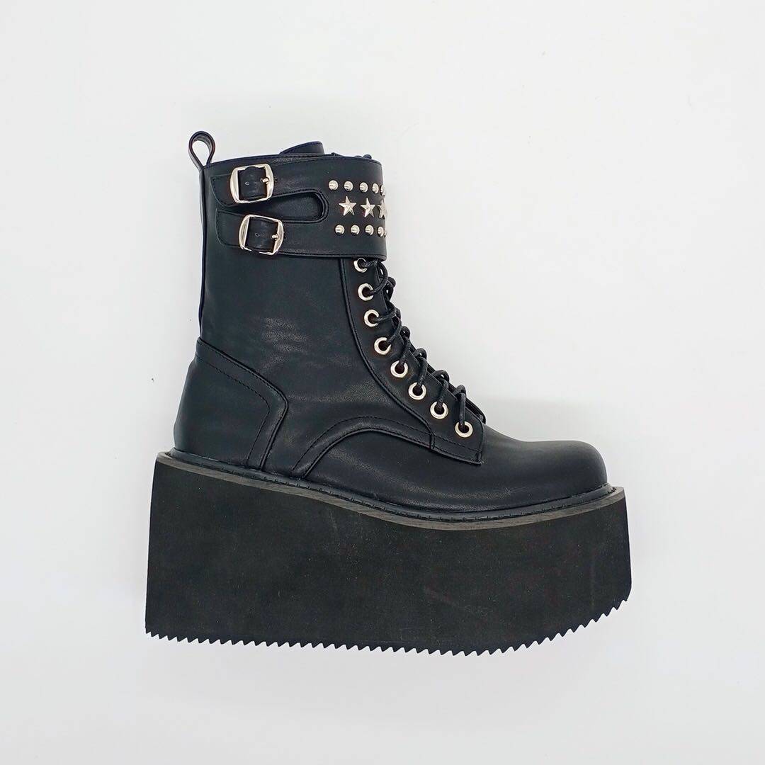 Оригинальный владелец магазина Antaina Real Shoot Loase The Cake Shouse Толкие подошва ботинки, ботинки для звездных заклепков, панк -женские туфли