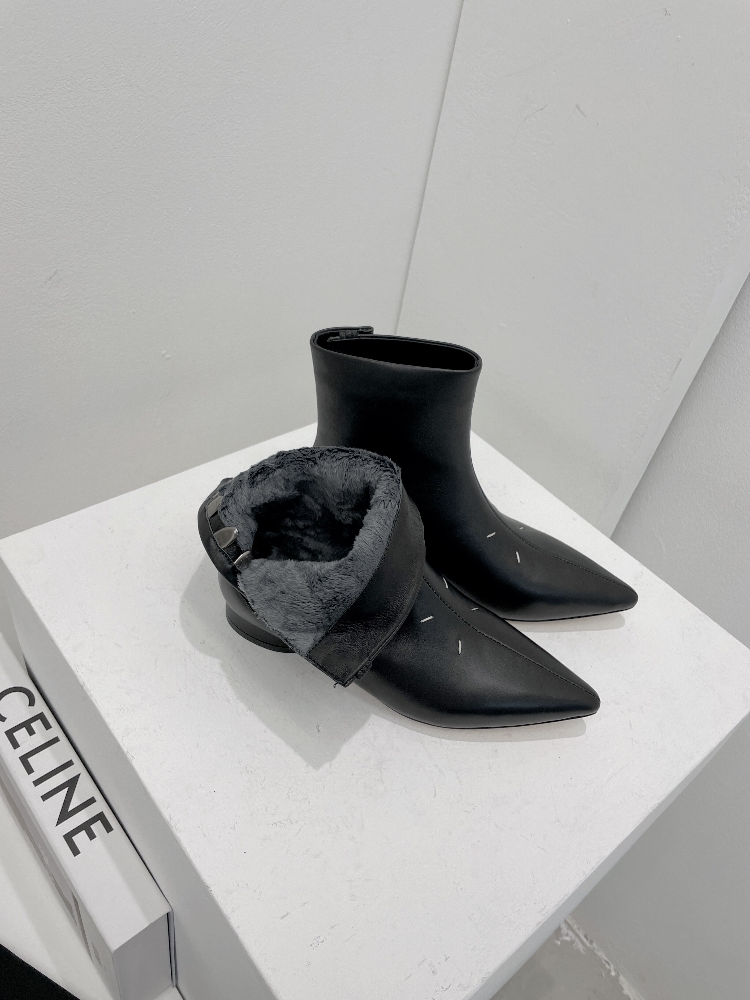 Tide, короткие сапоги с заостренным носом, флисовая обувь, популярно в интернете, коллекция 2022, из натуральной кожи, европейский стиль