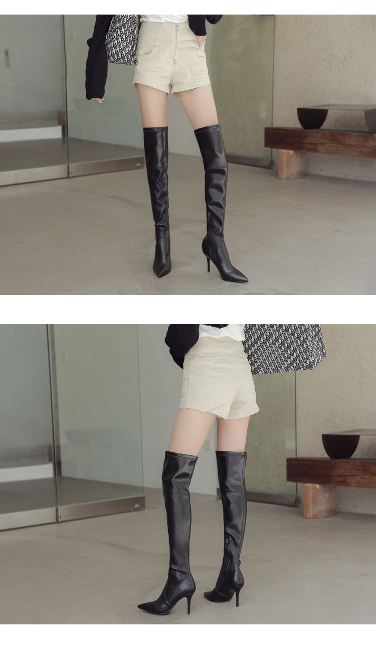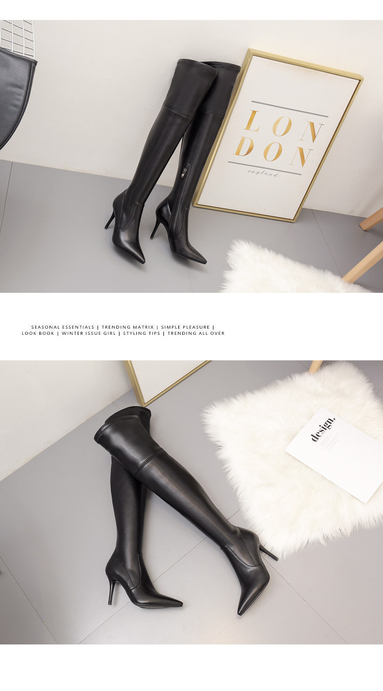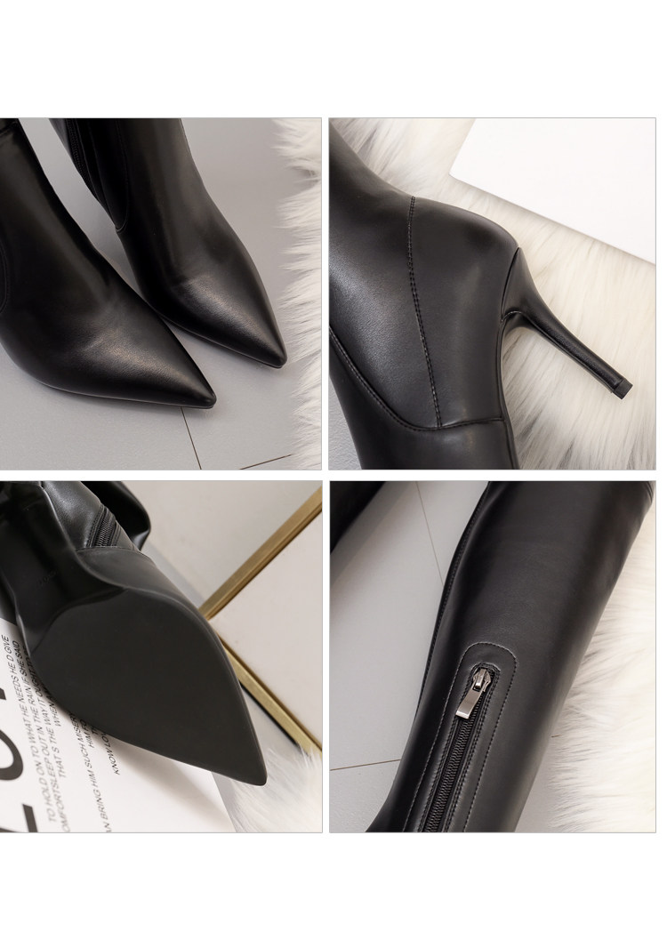 Высокие сапоги, кожаная обувь с заостренным носом на высоком каблуке, сексуальные черные ботинки, из натуральной кожи, по фигуре