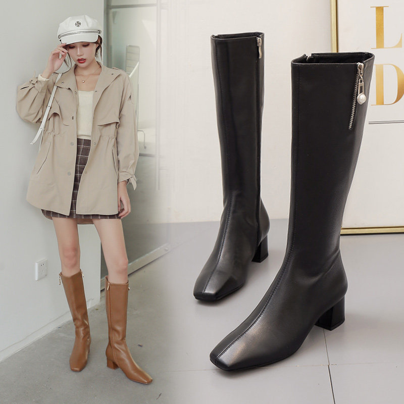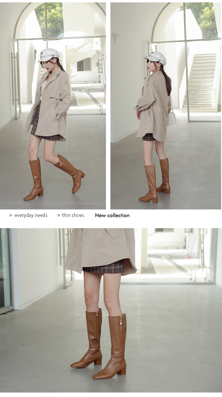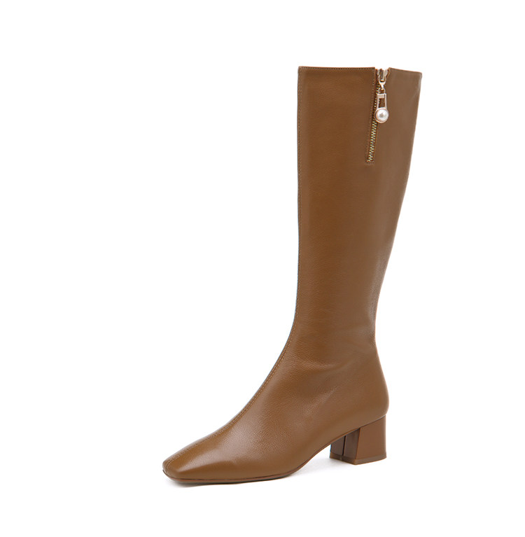 Коричневые высокие сапоги, из натуральной кожи, подходит для подростков