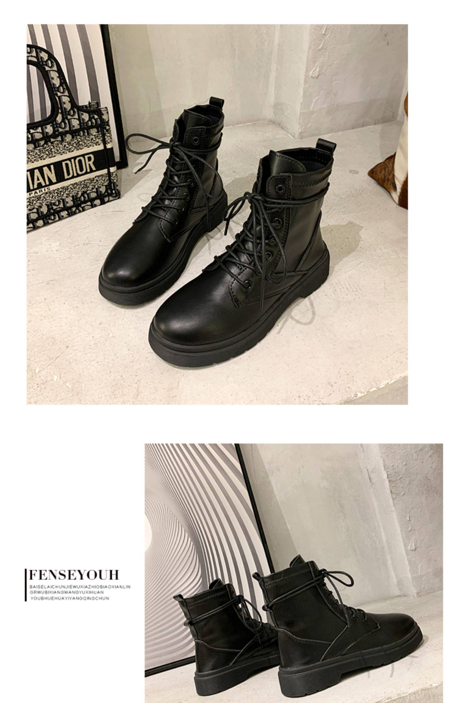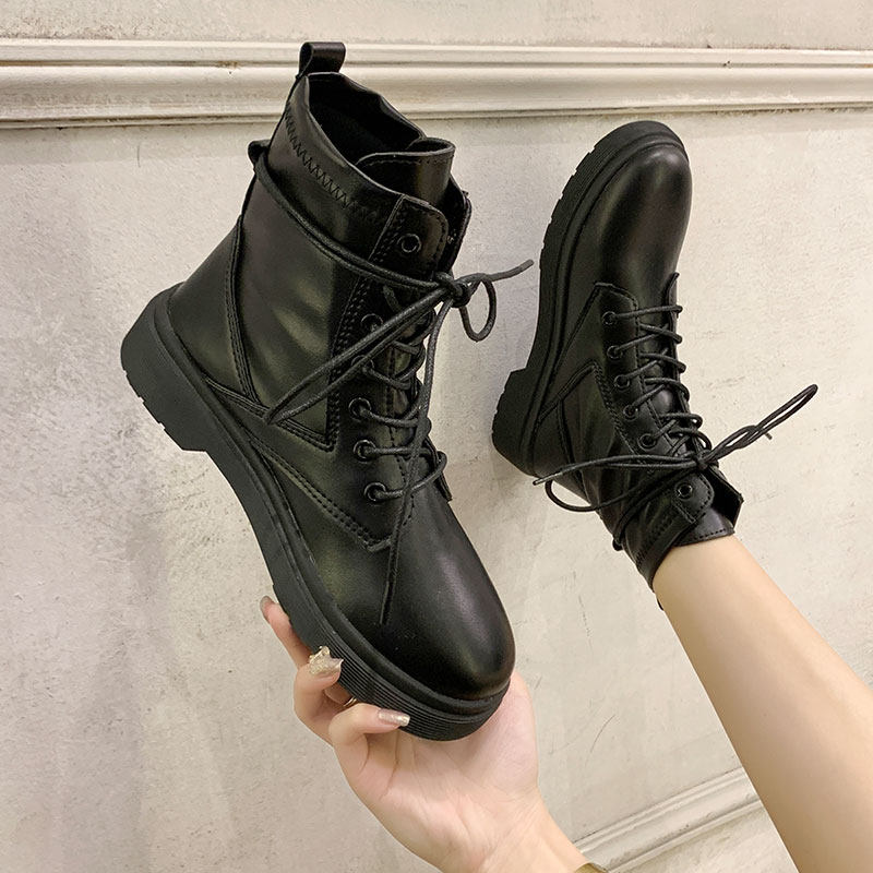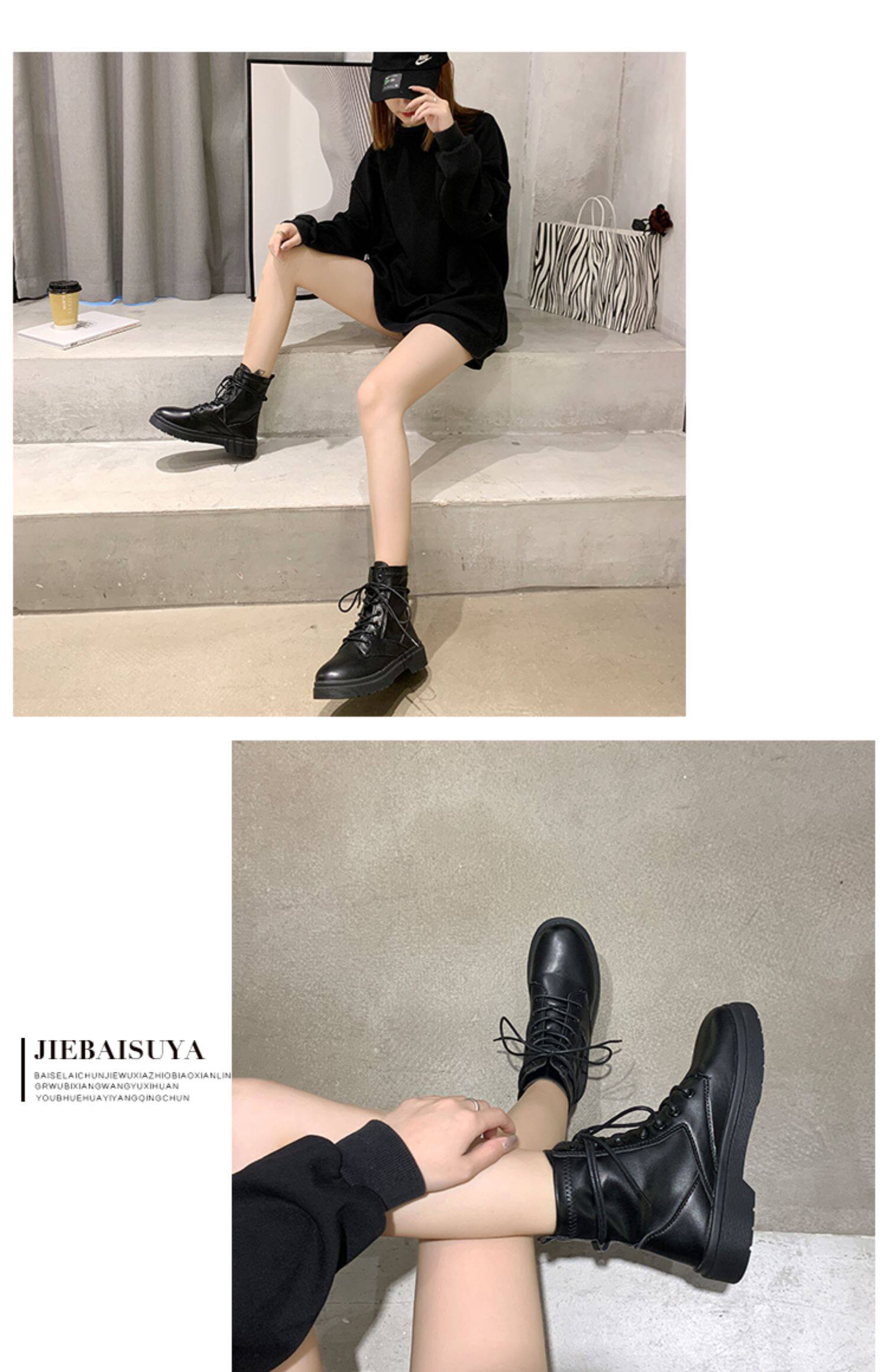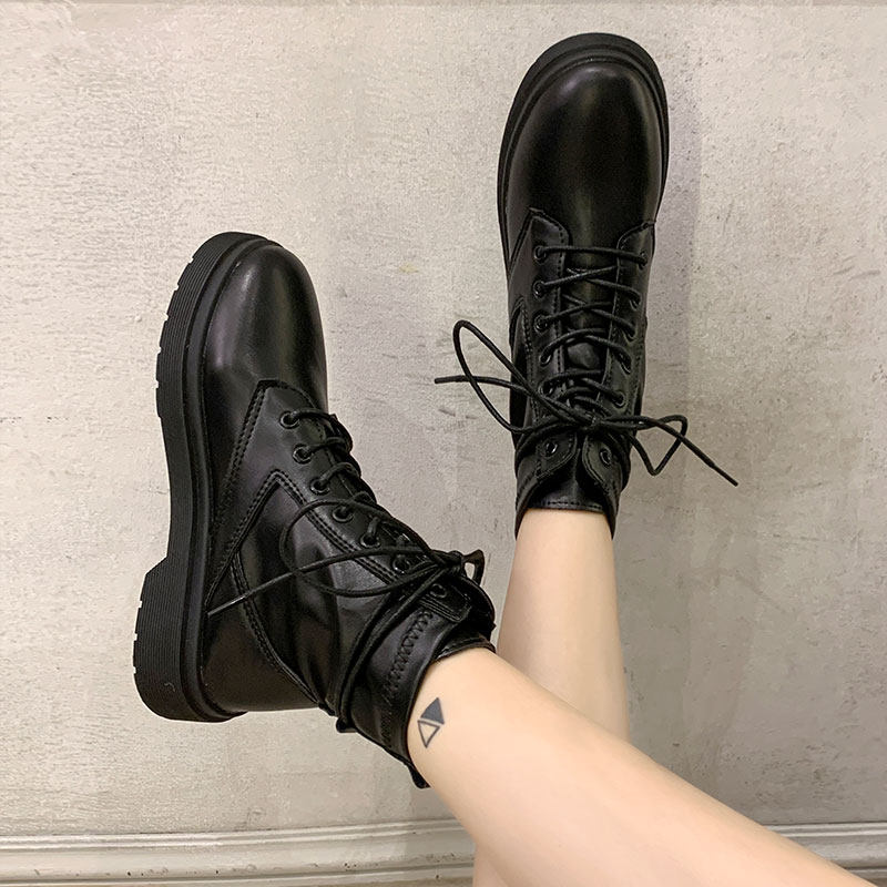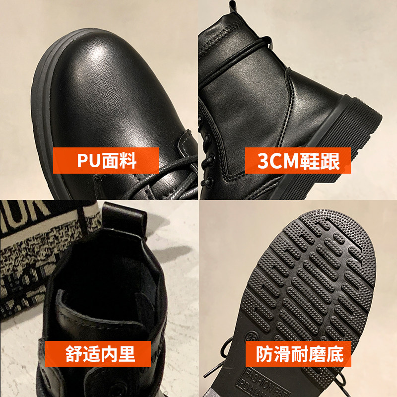 Martens, Tide, черные универсальные тонкие демисезонные короткие сапоги в английском стиле, коллекция 2021, осенние, в британском стиле