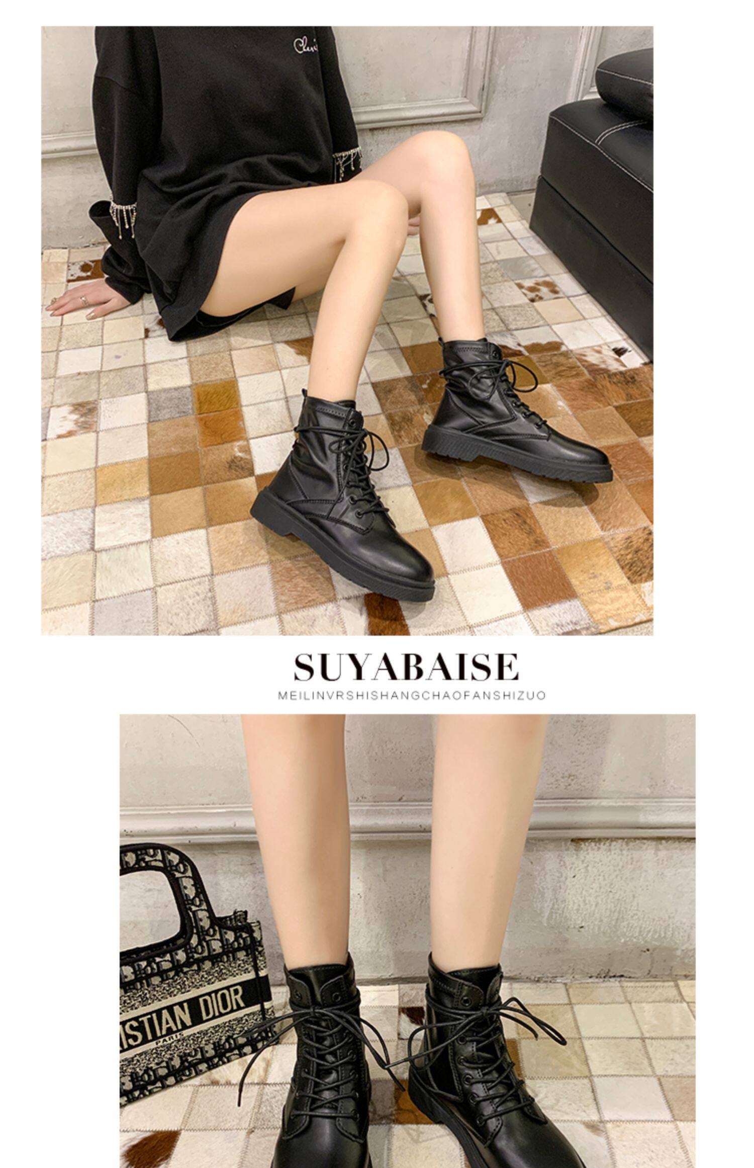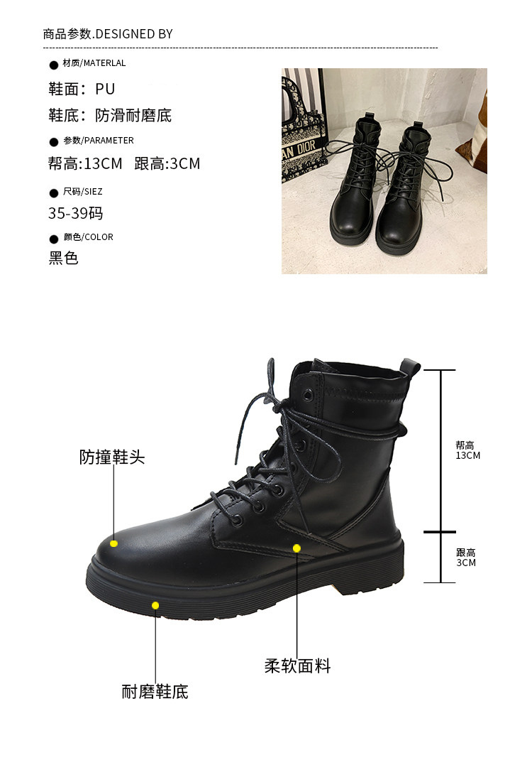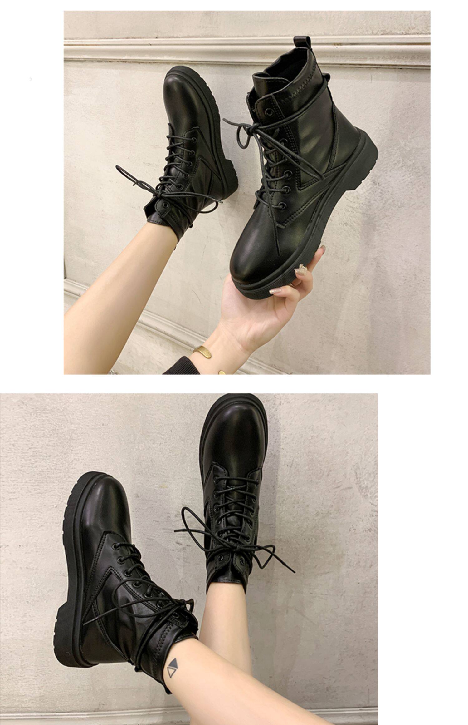 Martens, Tide, черные универсальные тонкие демисезонные короткие сапоги в английском стиле, коллекция 2021, осенние, в британском стиле