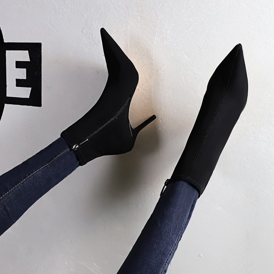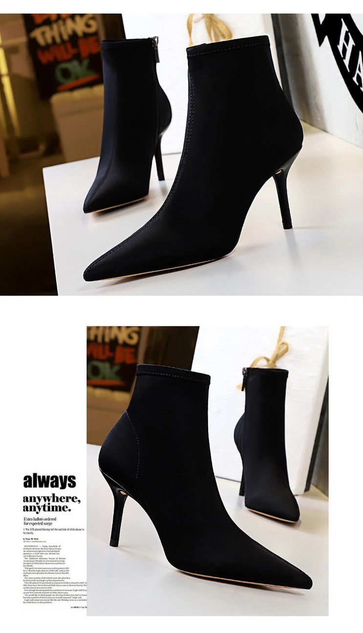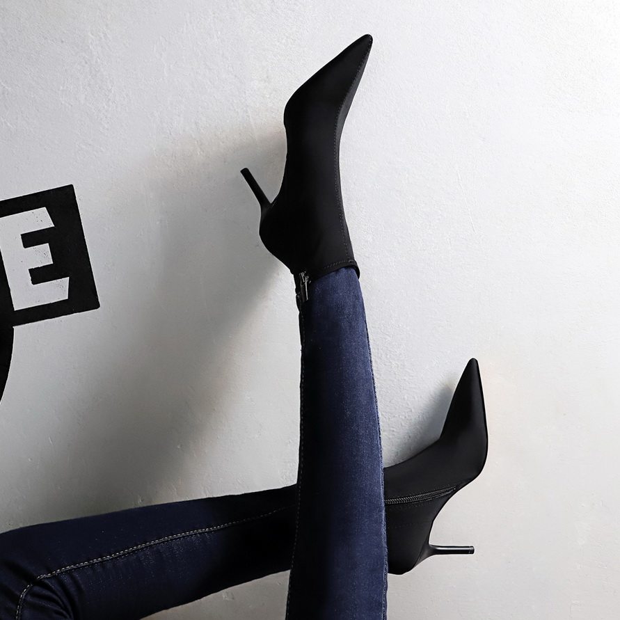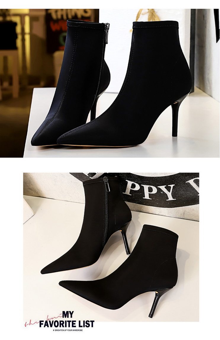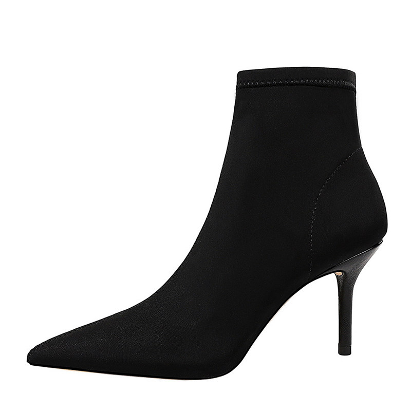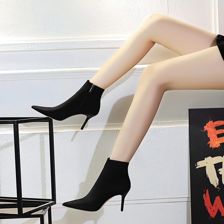 Высокие демисезонные ботинки, черные эластичные сапоги, 8см