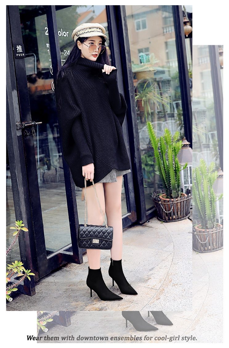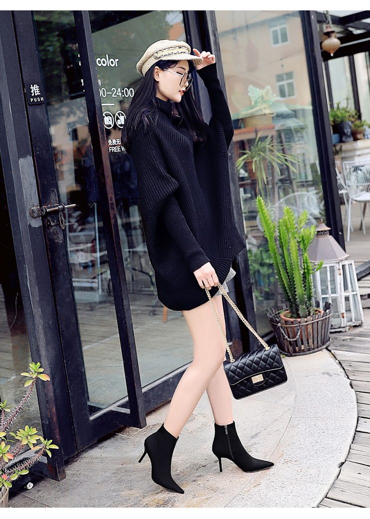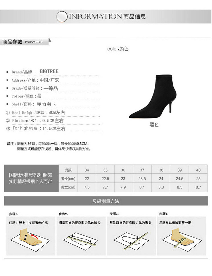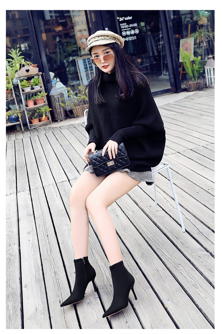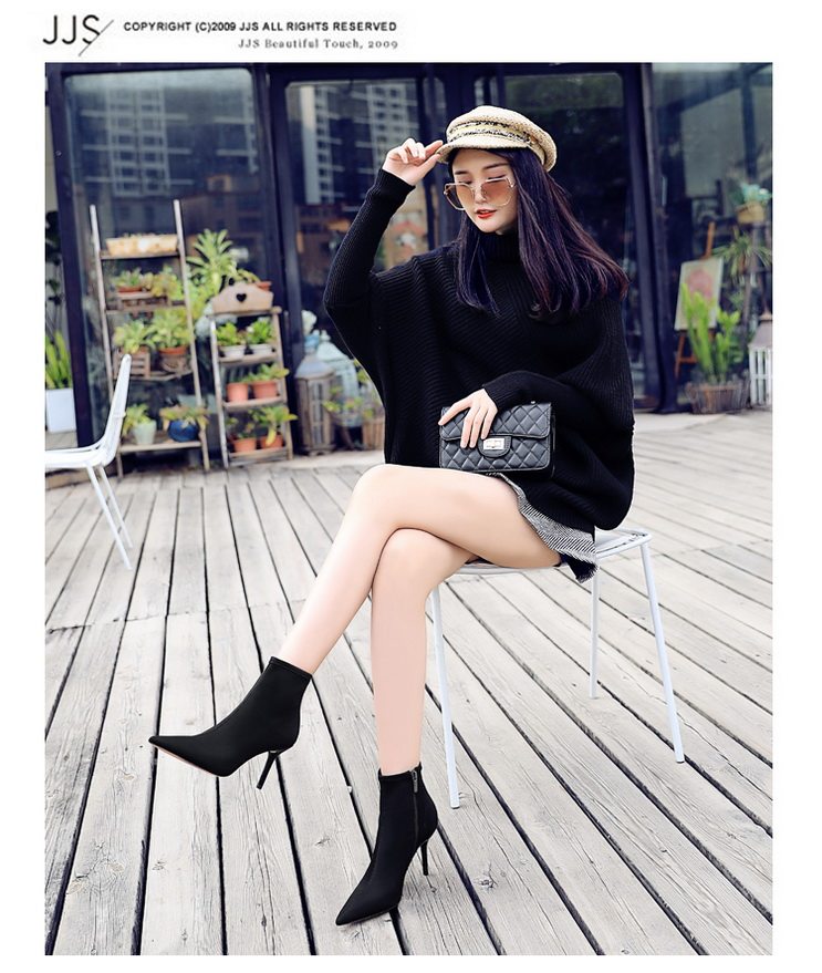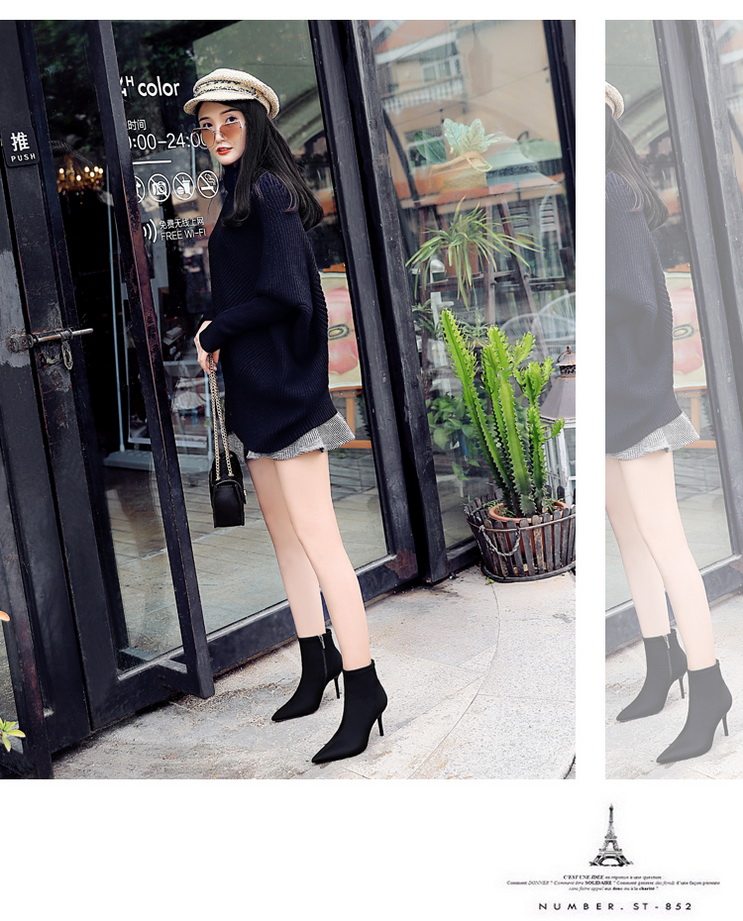 Высокие демисезонные ботинки, черные эластичные сапоги, 8см