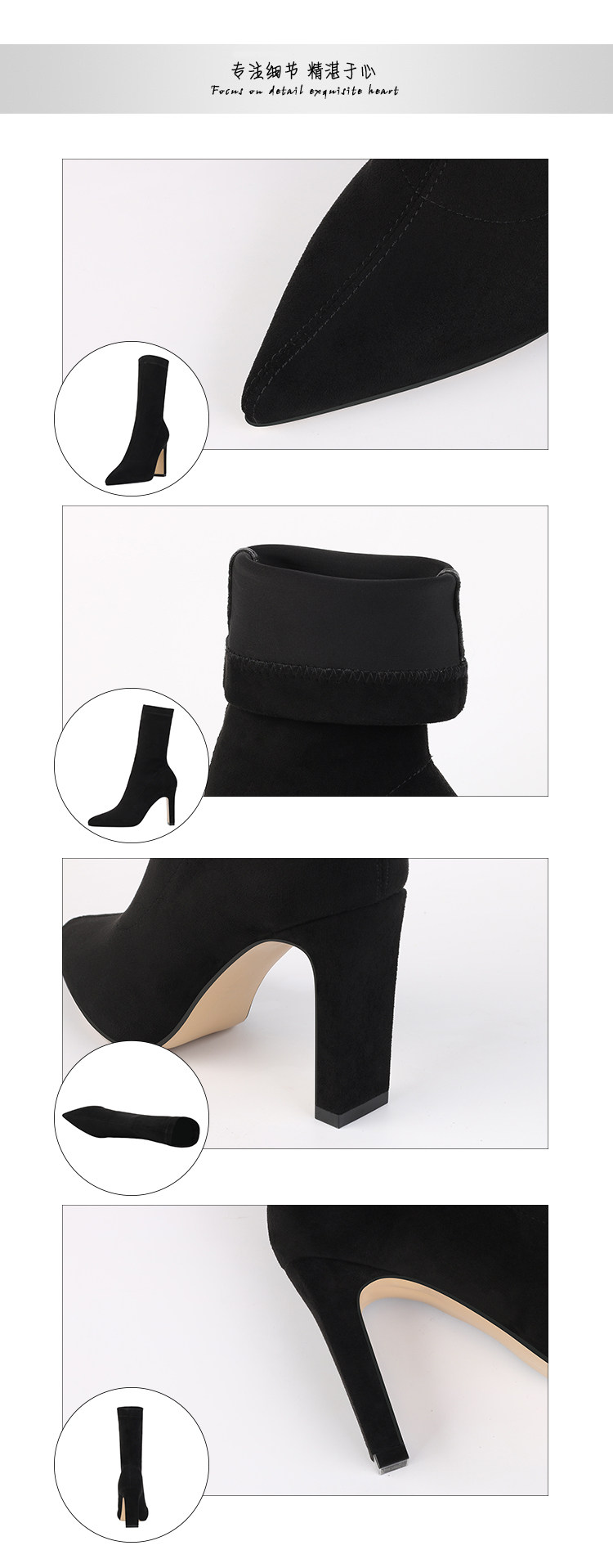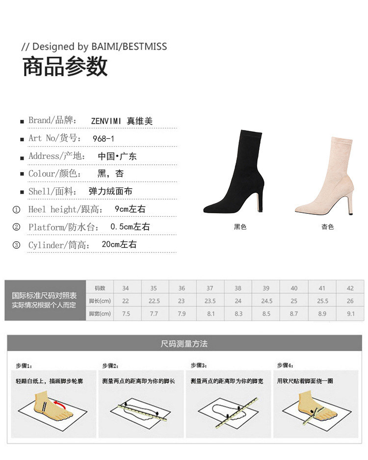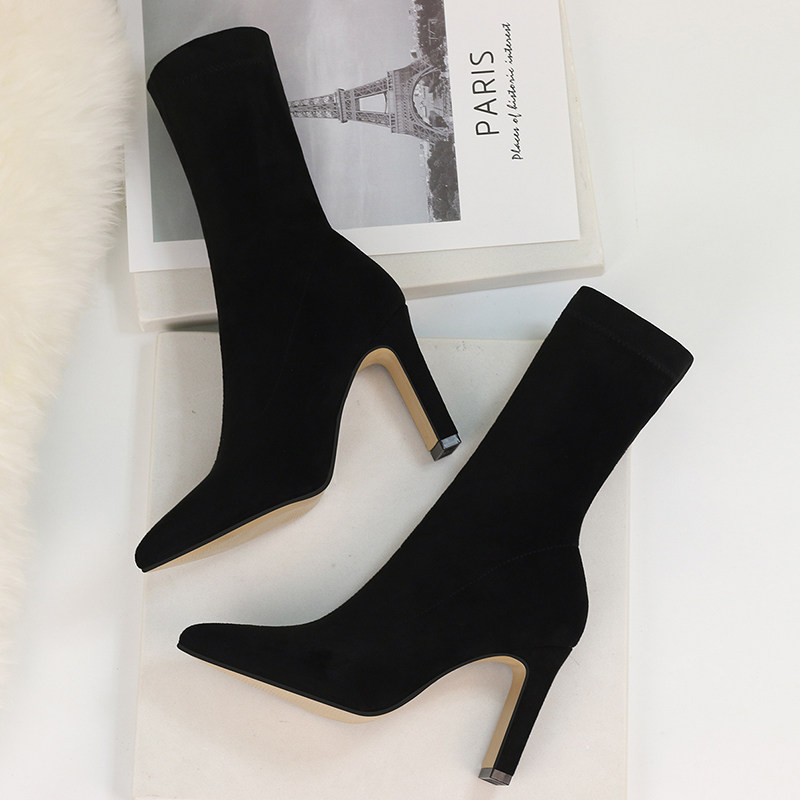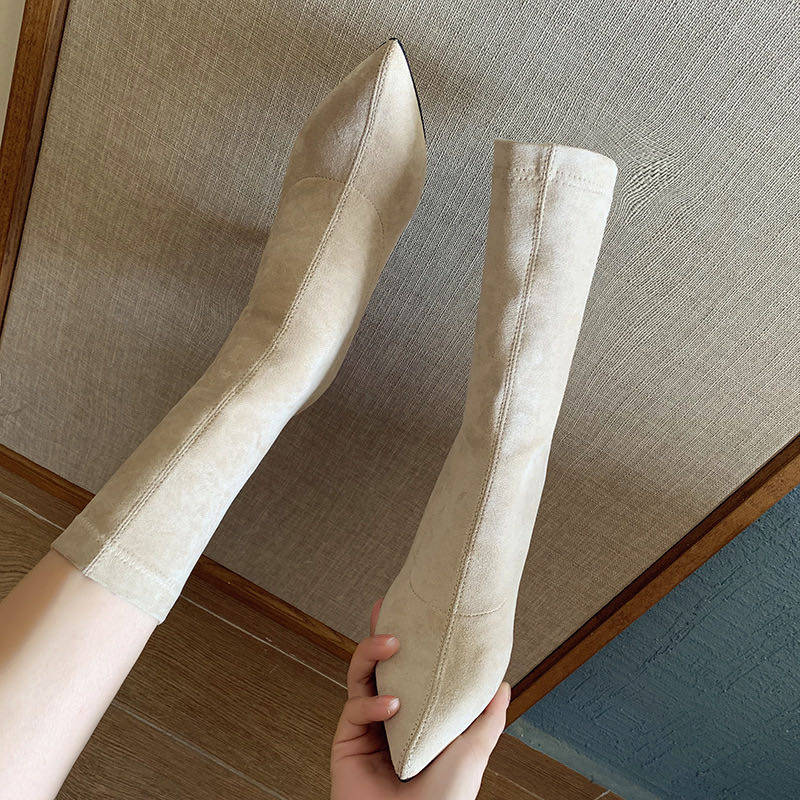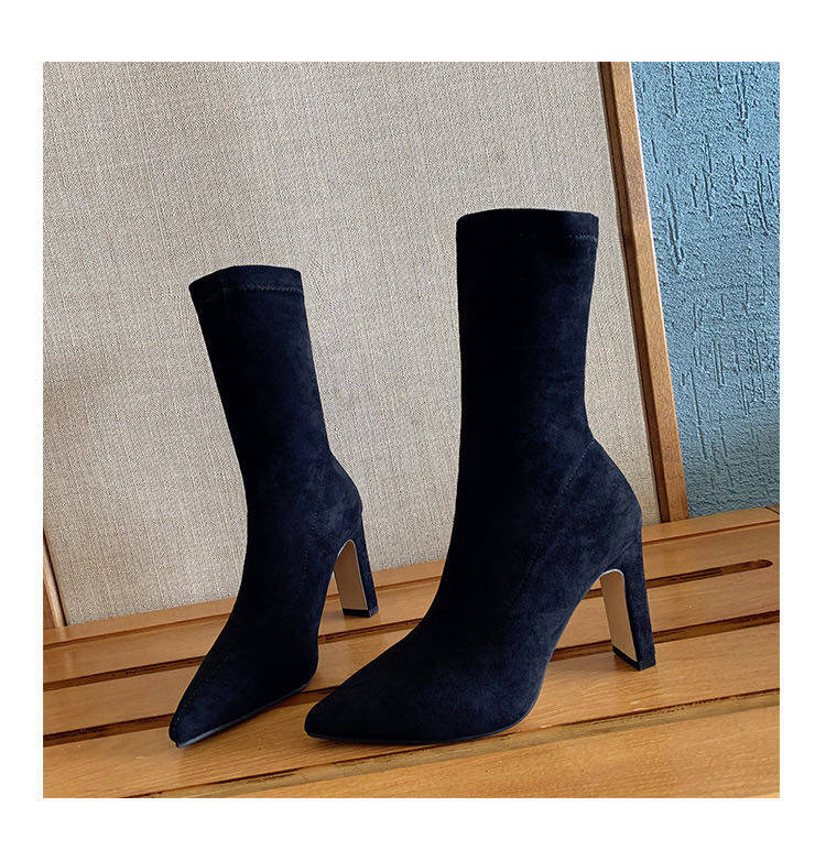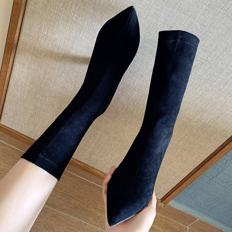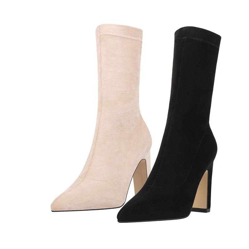 Ботинки, обувь на высоком каблуке, эластичные утепленные сапоги с заостренным носом, коллекция 2021, средней длины