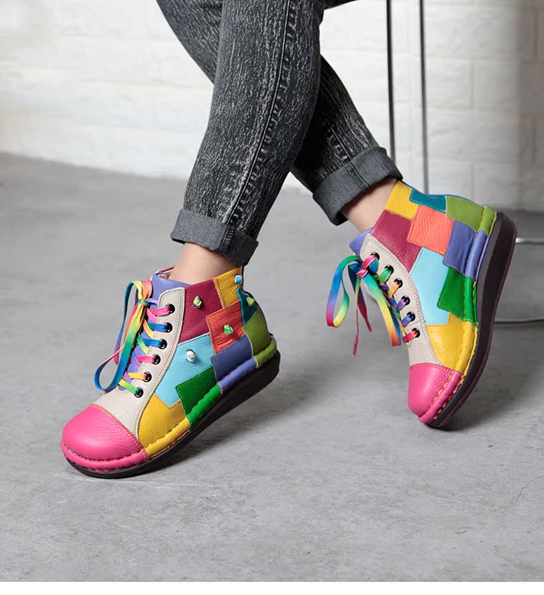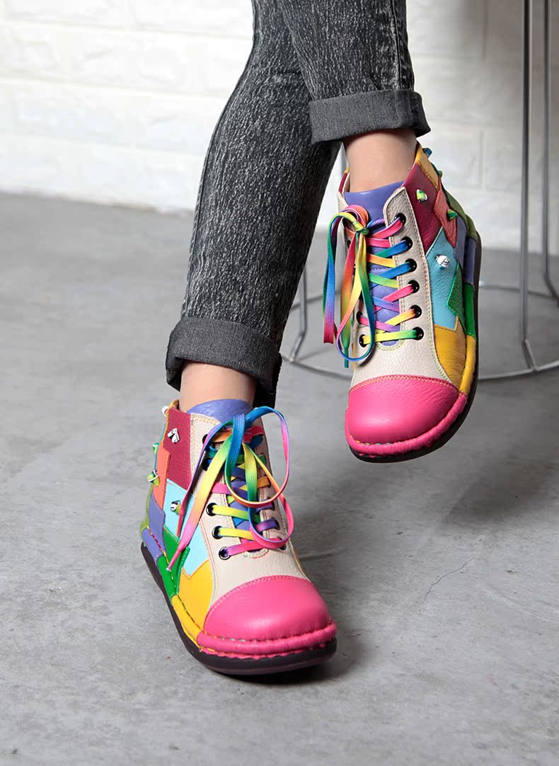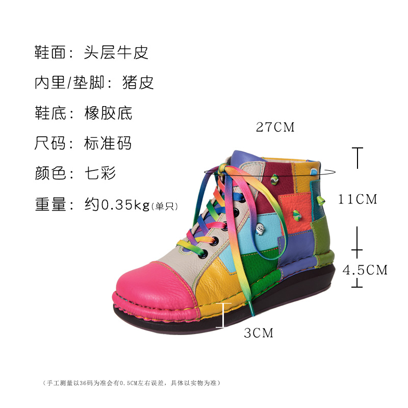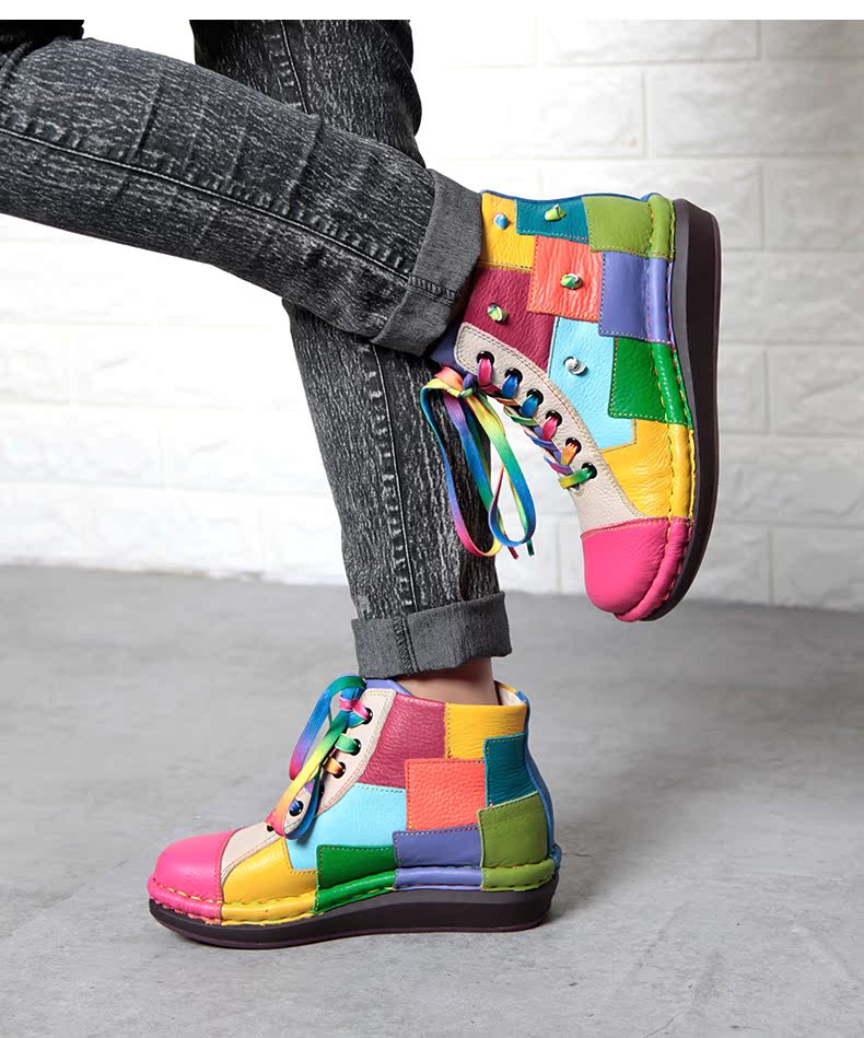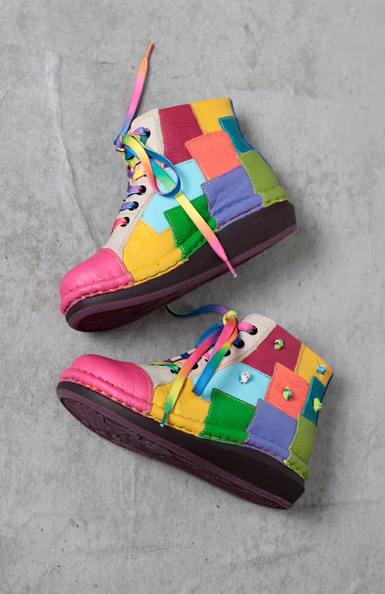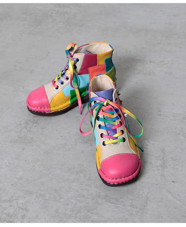 Кожаные короткие сапоги на платформе, радужные ботинки, туфли, воловья кожа
