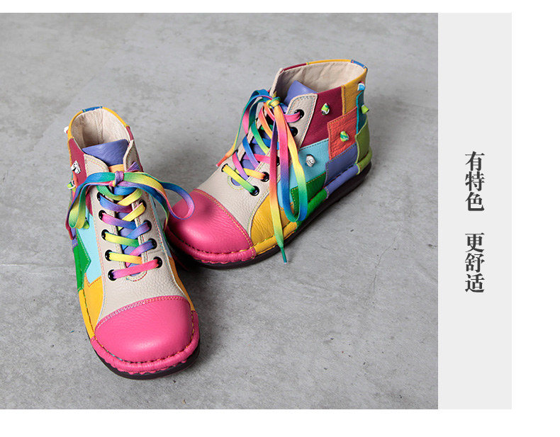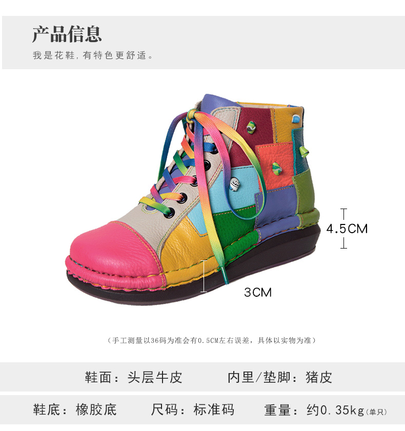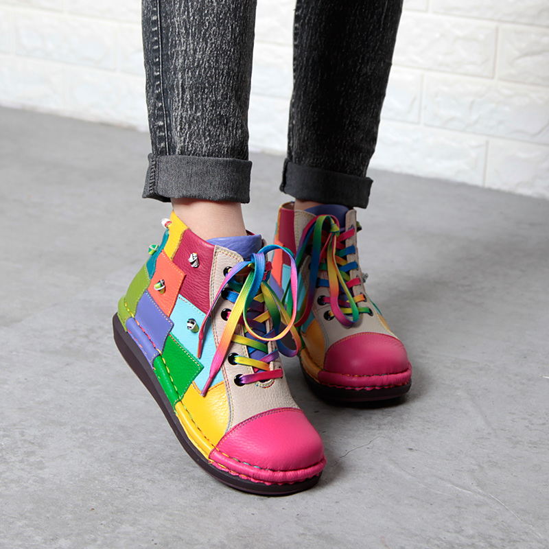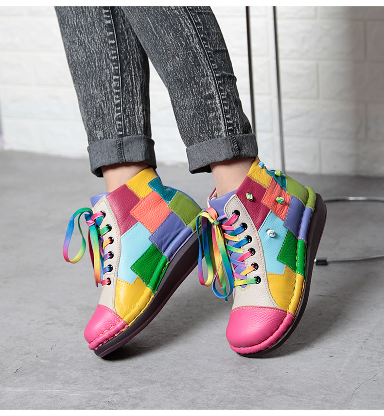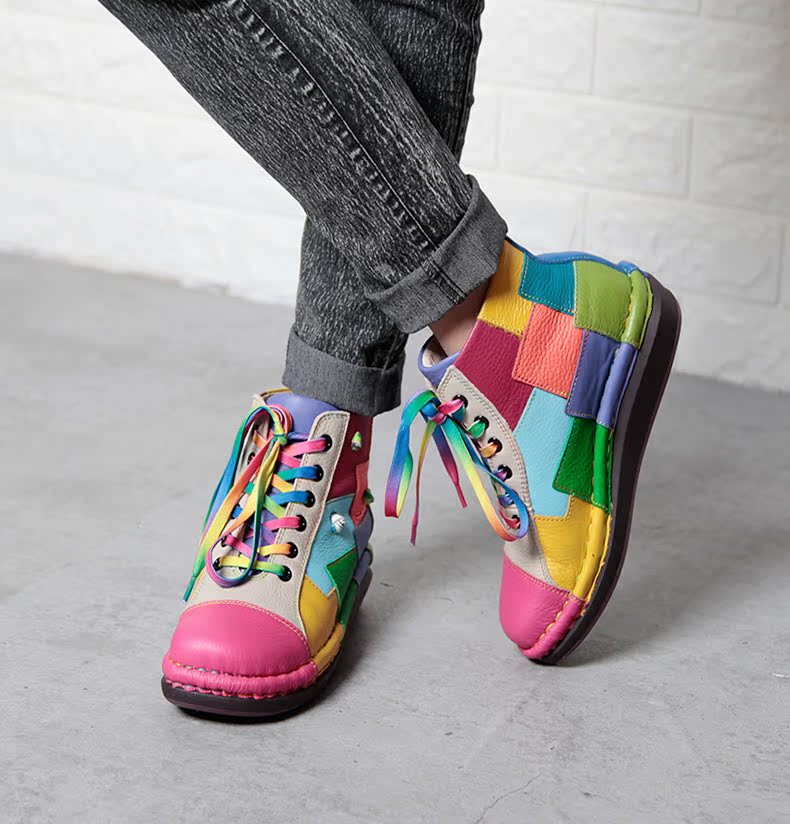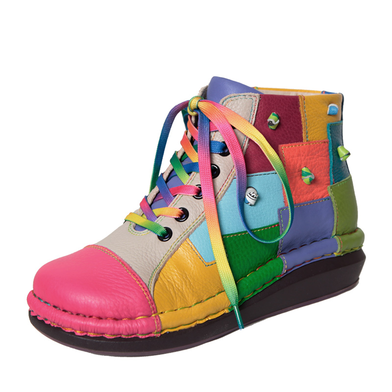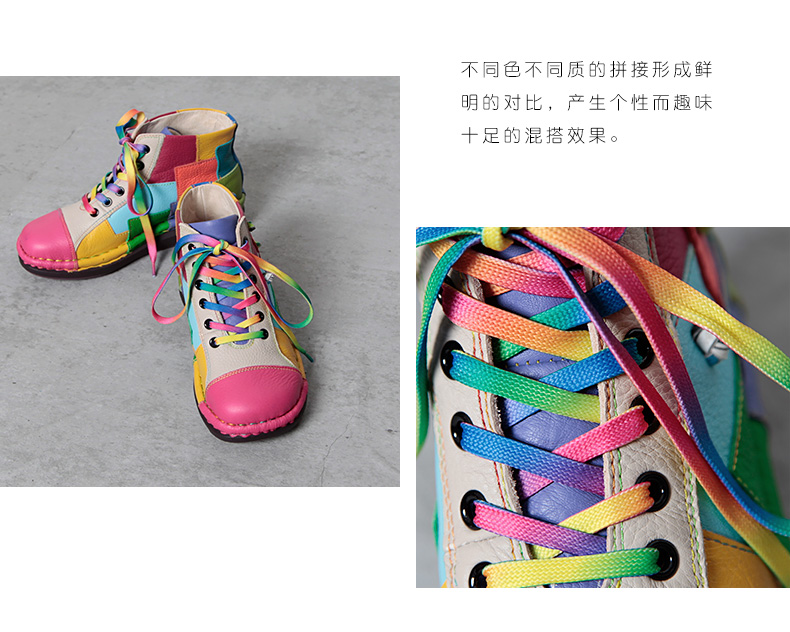 Кожаные короткие сапоги на платформе, радужные ботинки, туфли, воловья кожа
