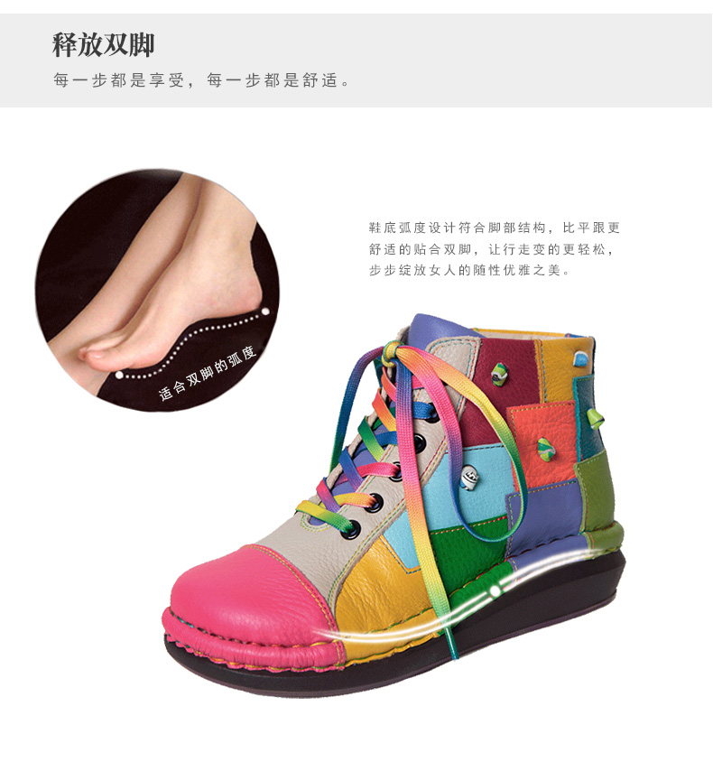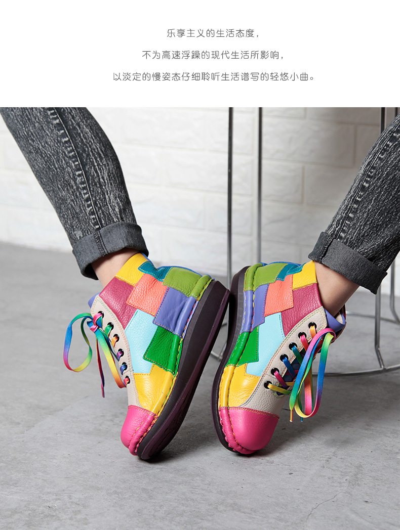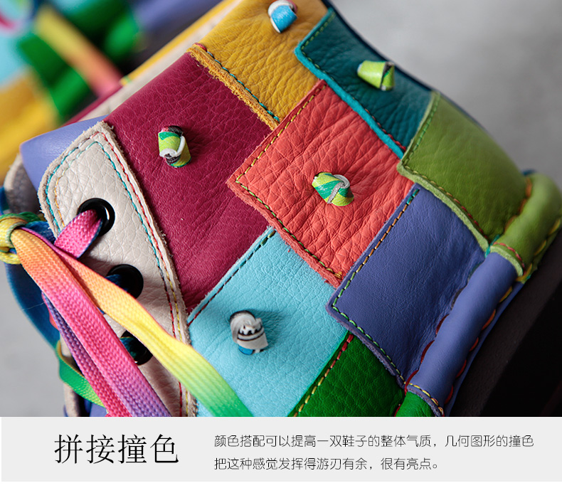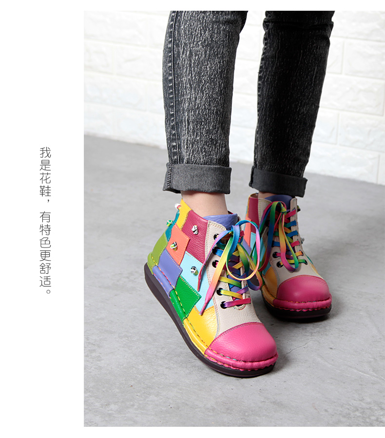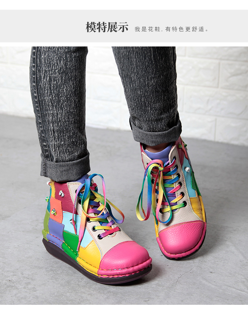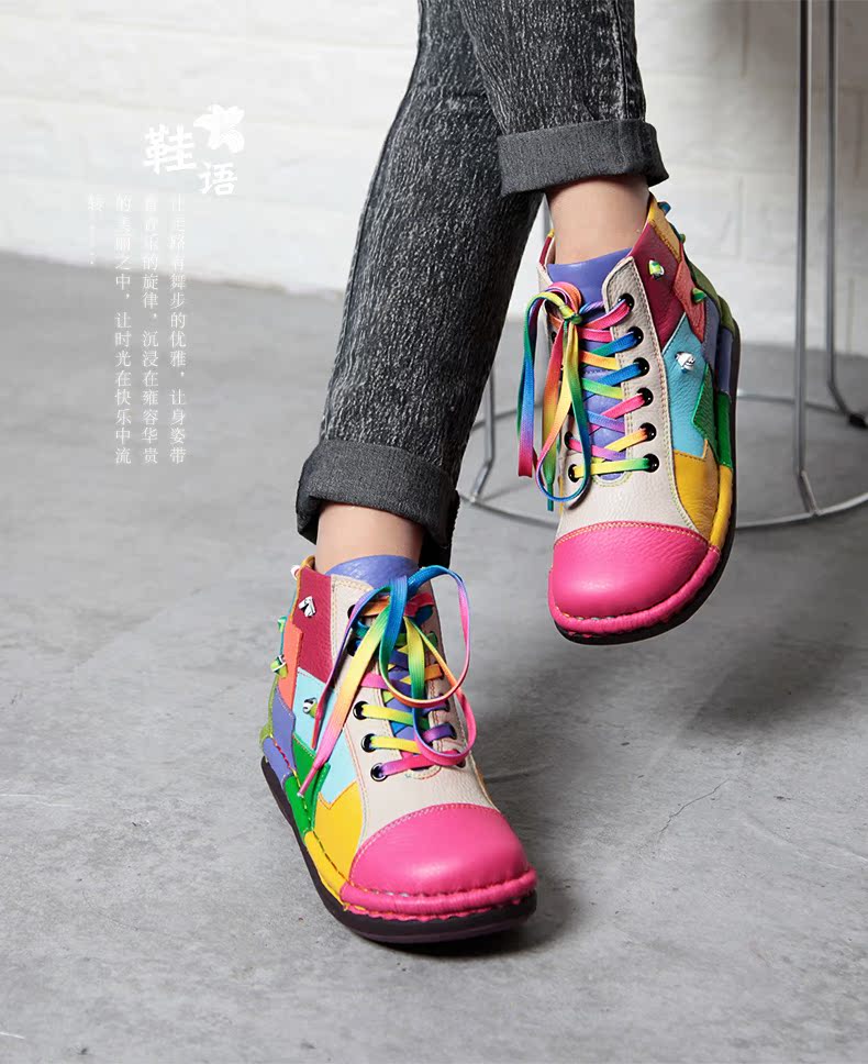 Кожаные короткие сапоги на платформе, радужные ботинки, туфли, воловья кожа