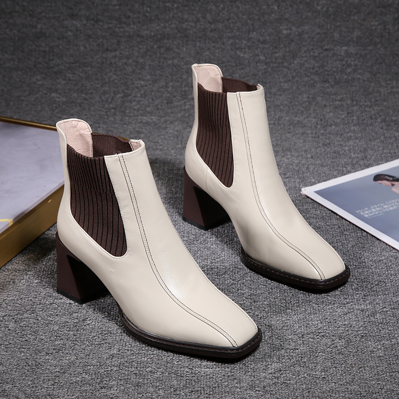 Белые ботинки на высоком каблуке, демисезонные ботильоны, туфли, короткие сапоги, из натуральной кожи