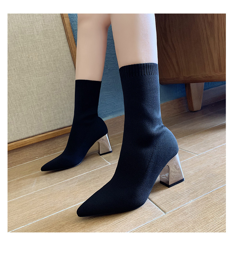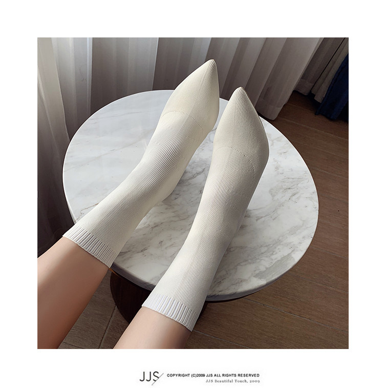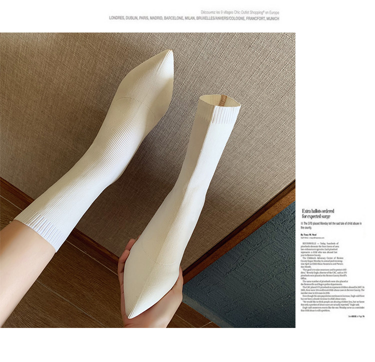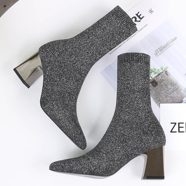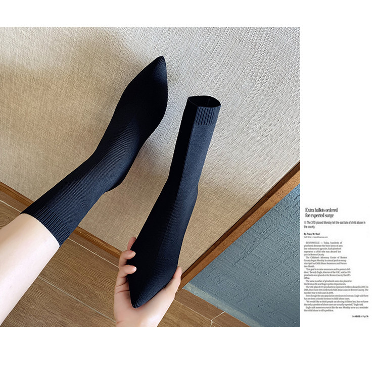 Сапоги, эластичные трикотажные высокие носки с заостренным носом, популярно в интернете, средней длины