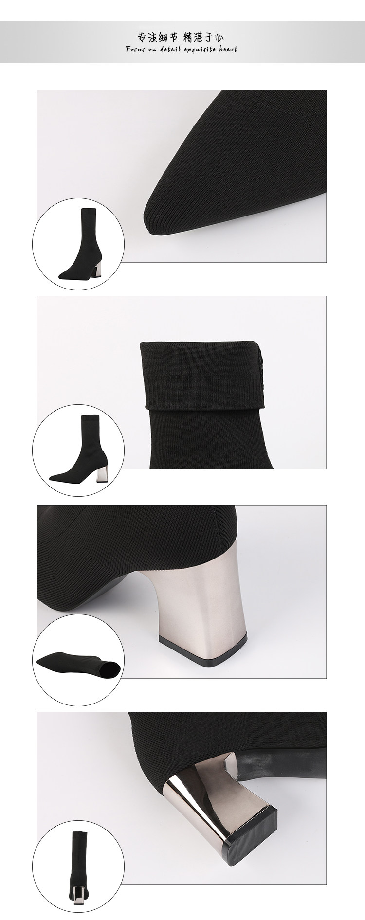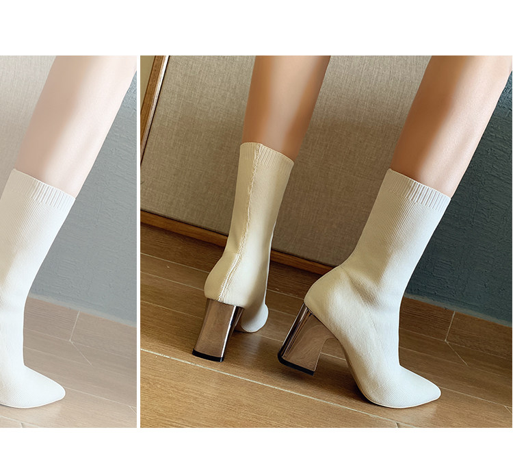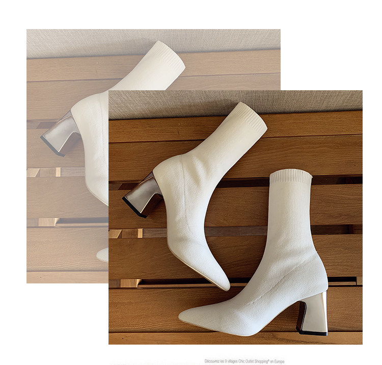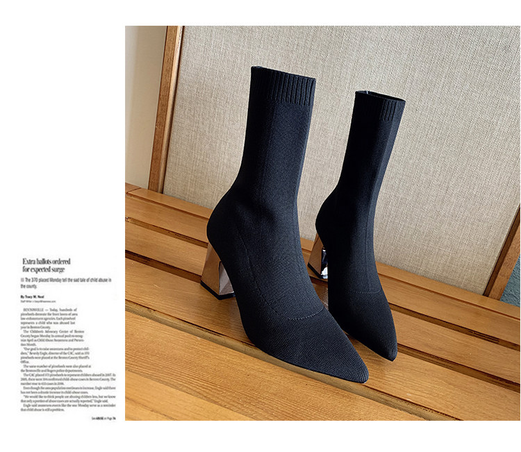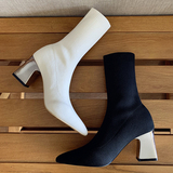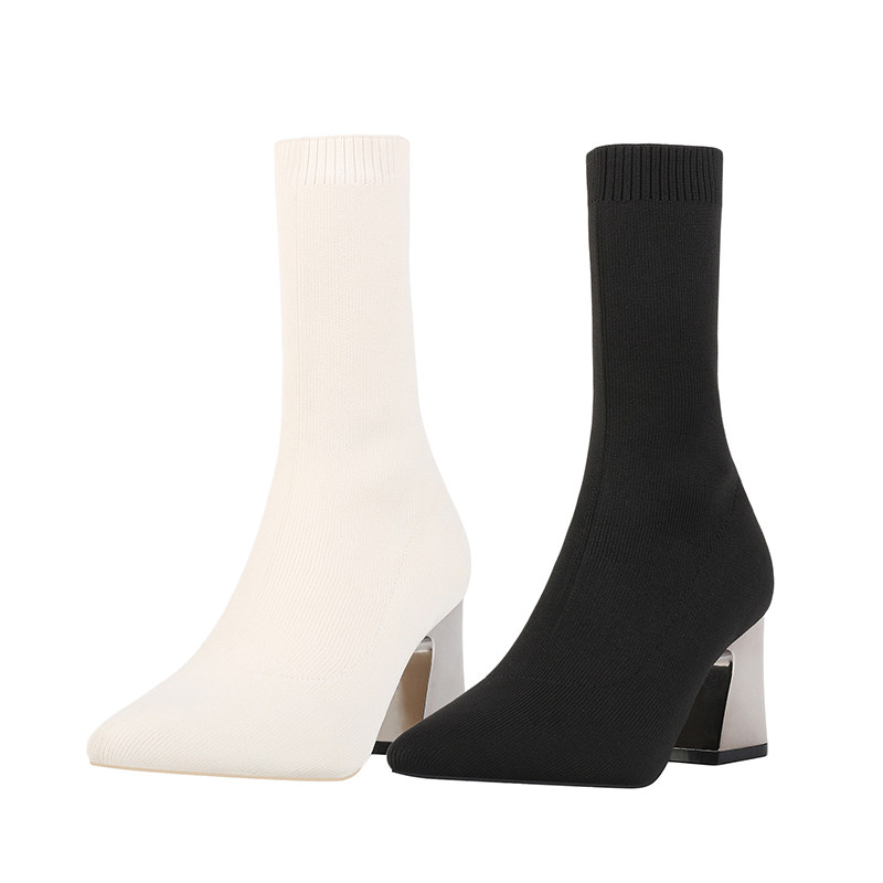 Сапоги, эластичные трикотажные высокие носки с заостренным носом, популярно в интернете, средней длины