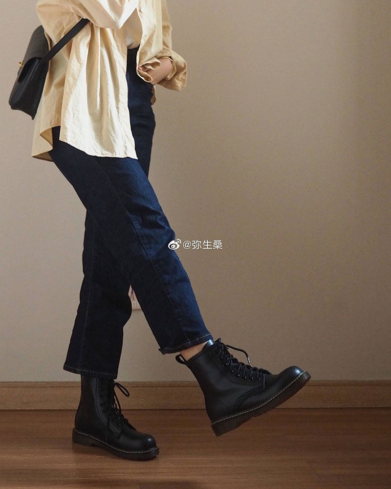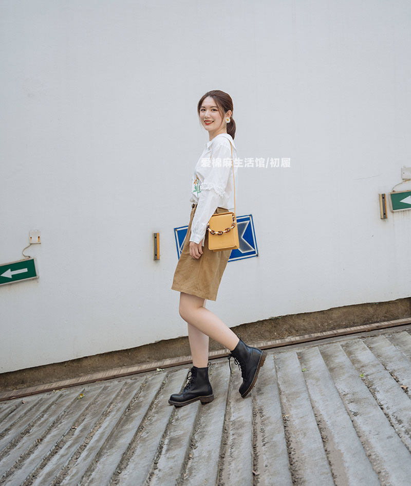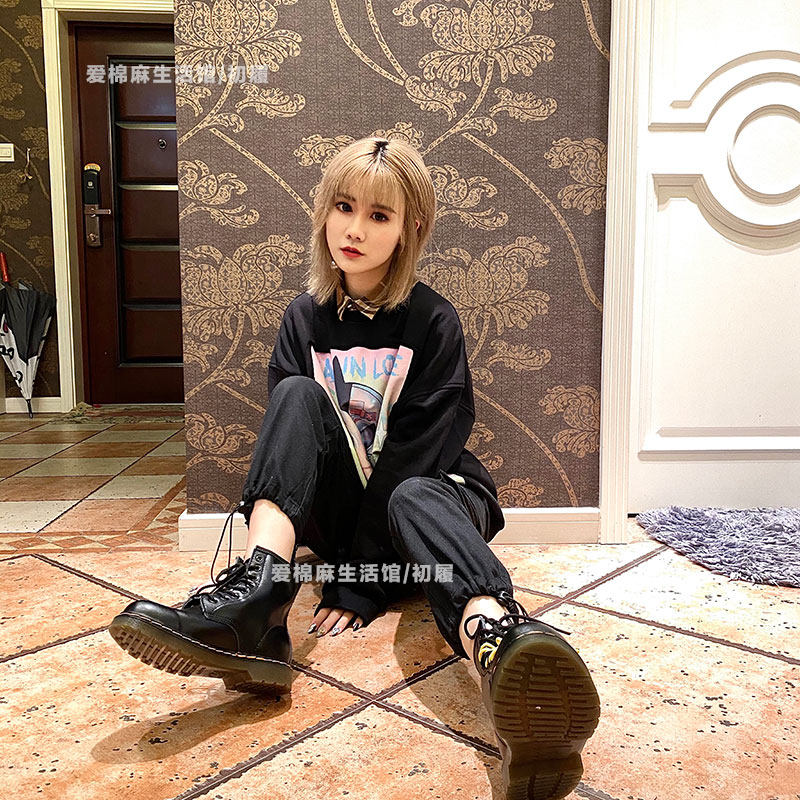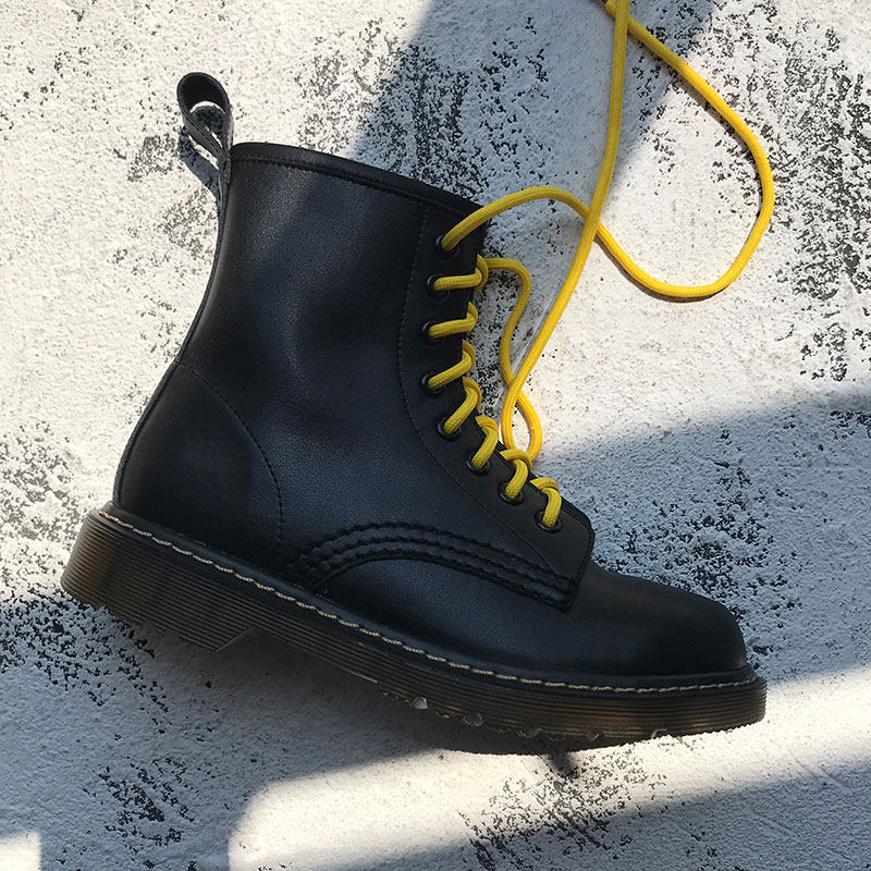 Martens, демисезонные короткие сапоги в английском стиле, из хлопка и льна, коллекция 2023, по фигуре, из натуральной кожи