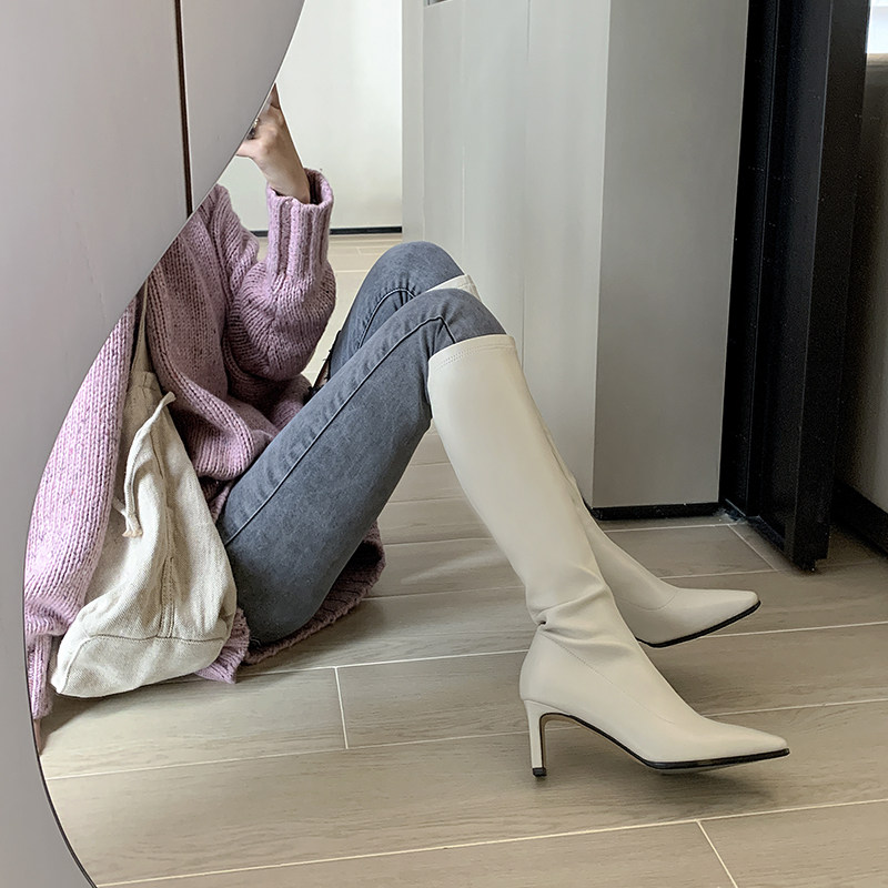 Белые ботинки, эластичные высокие сапоги, 2020, европейский стиль, подходят для подростков