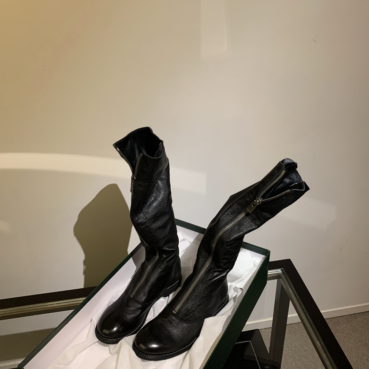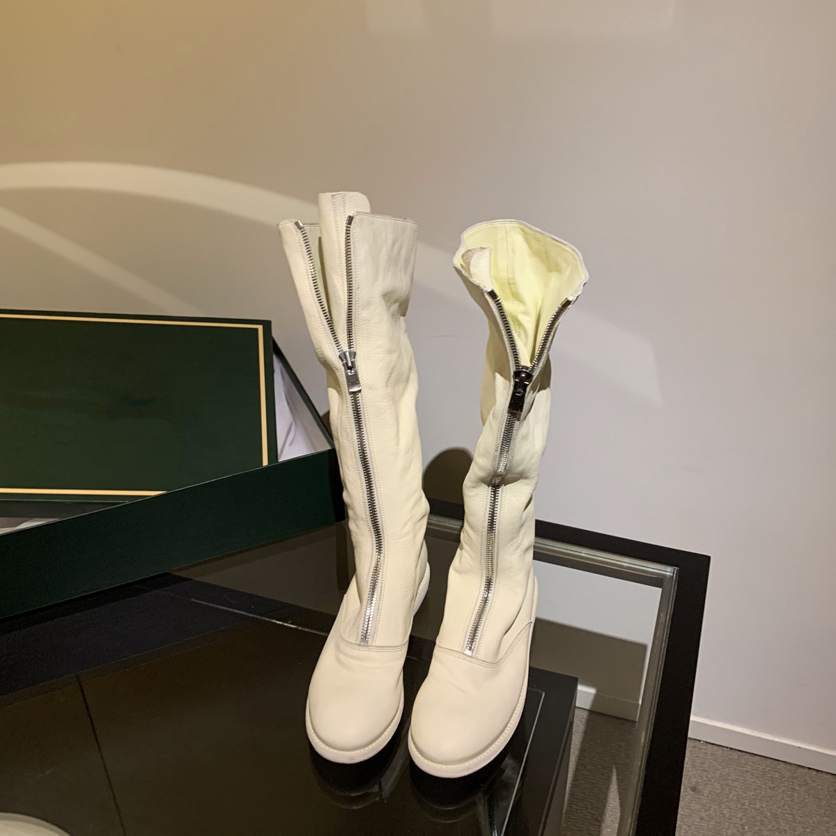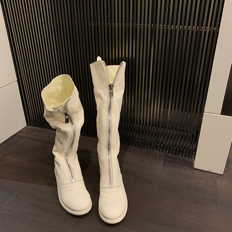 Spot [Wang Xiaoshi] белая розовая оленя Guidi Gride Ghost Imperor Boots Choarse Zipper одинокие ботинки дети длинные сапоги кавалеров
