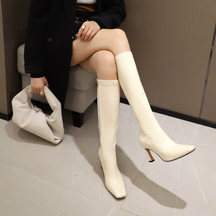 Чистый красный белый рыцарь -сапоги женский инопланетный инопланетянин -хи -ботинки белый куб высокий ботинок Большой размер 44 45 46 47 48