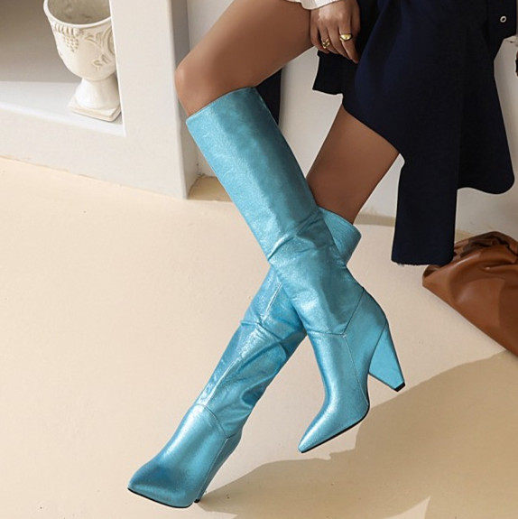 Европейские и американские новые голубые женские ботинки синие модные ботинки с высоким высоким размером высокого размера 44 45 46 47 48 48