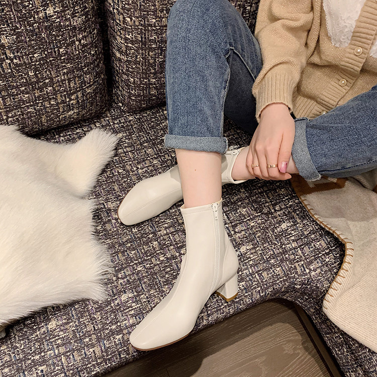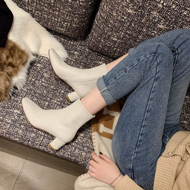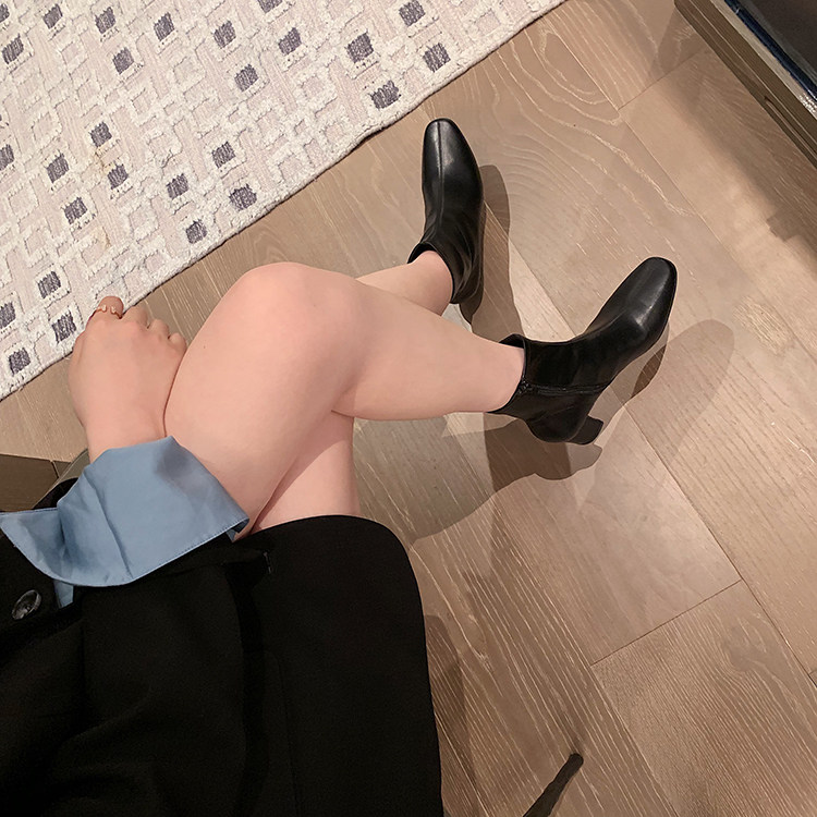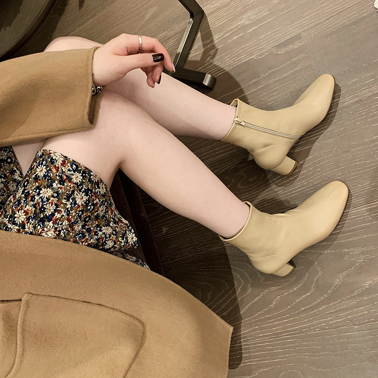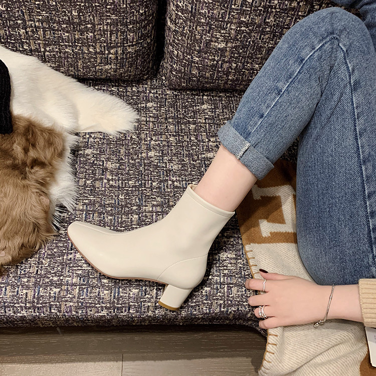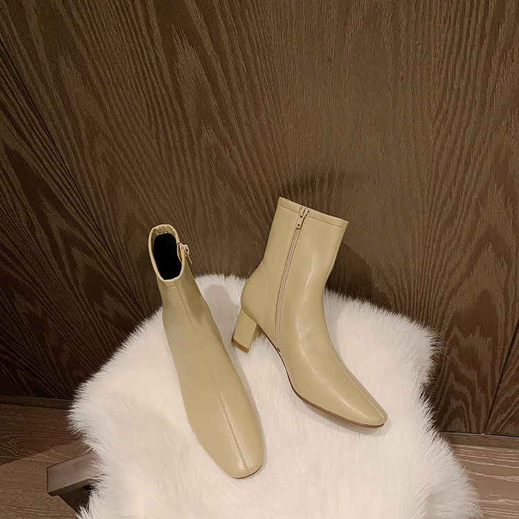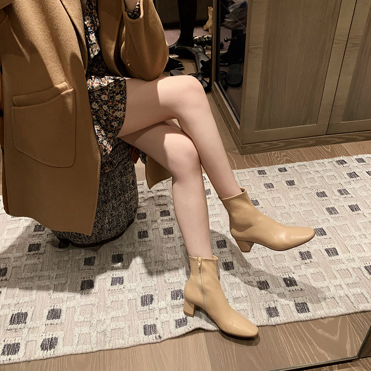 Высокие эластичные короткие сапоги, из натуральной кожи