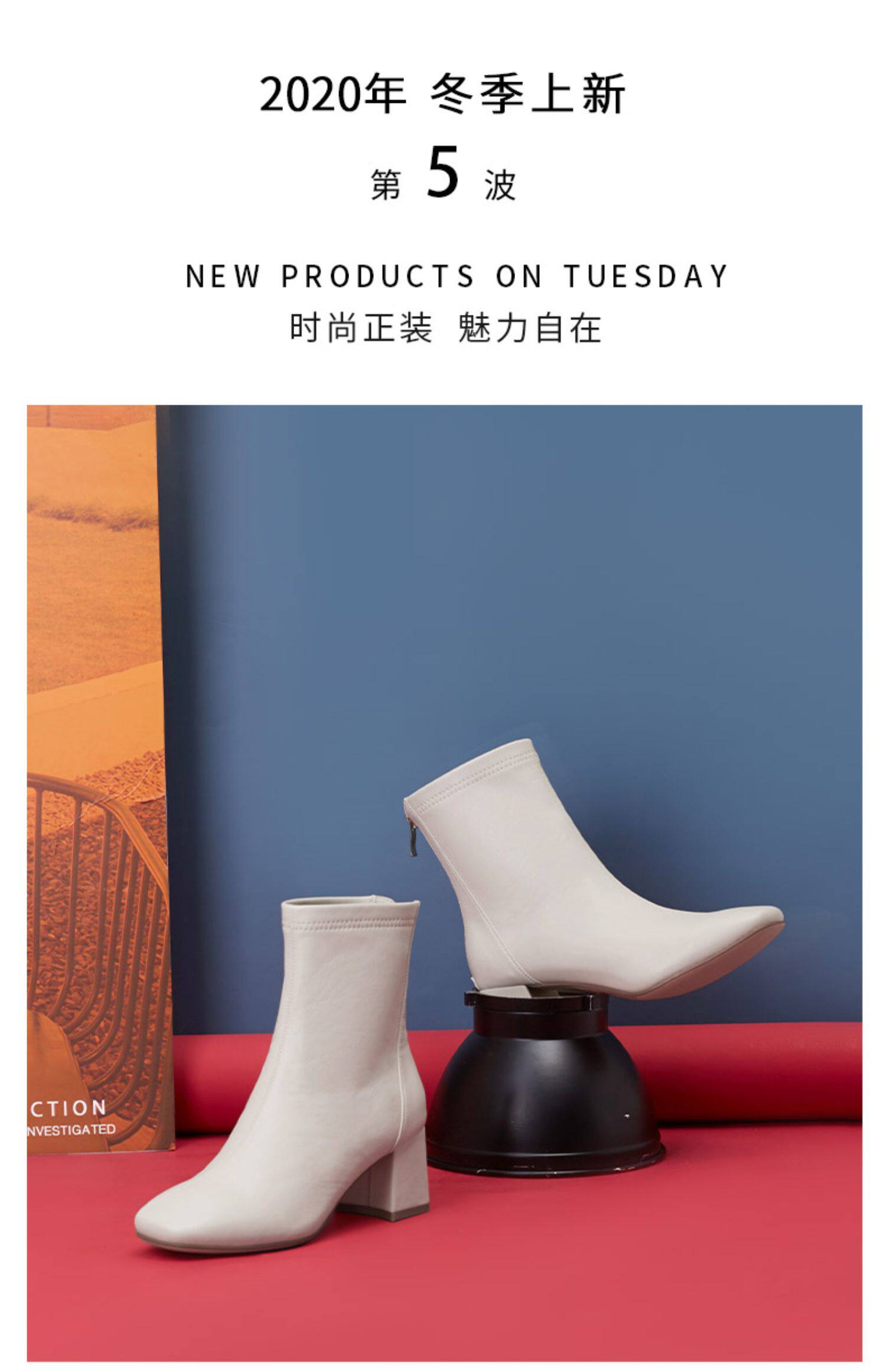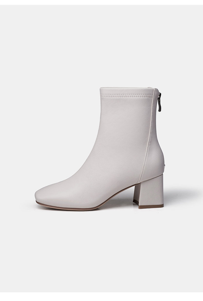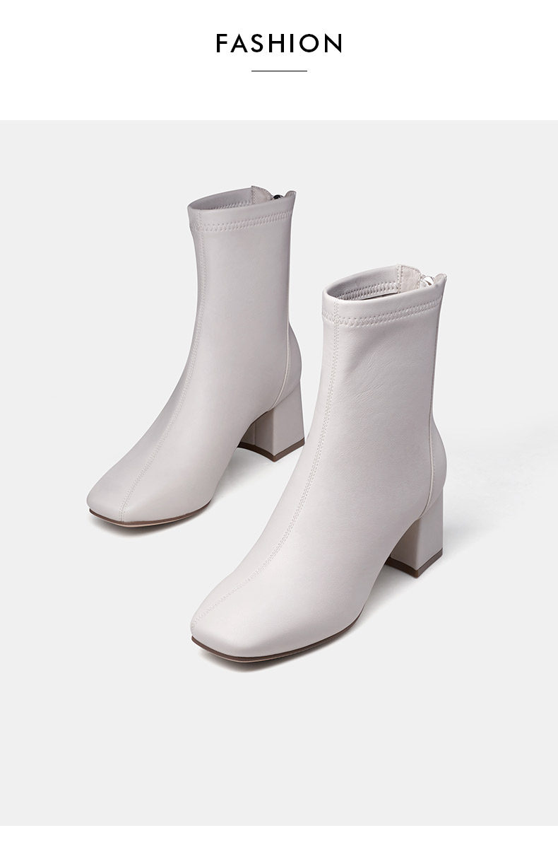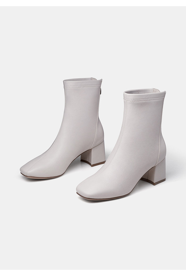 Белые демисезонные эластичные короткие сапоги, туфли на высоком каблуке, французский стиль