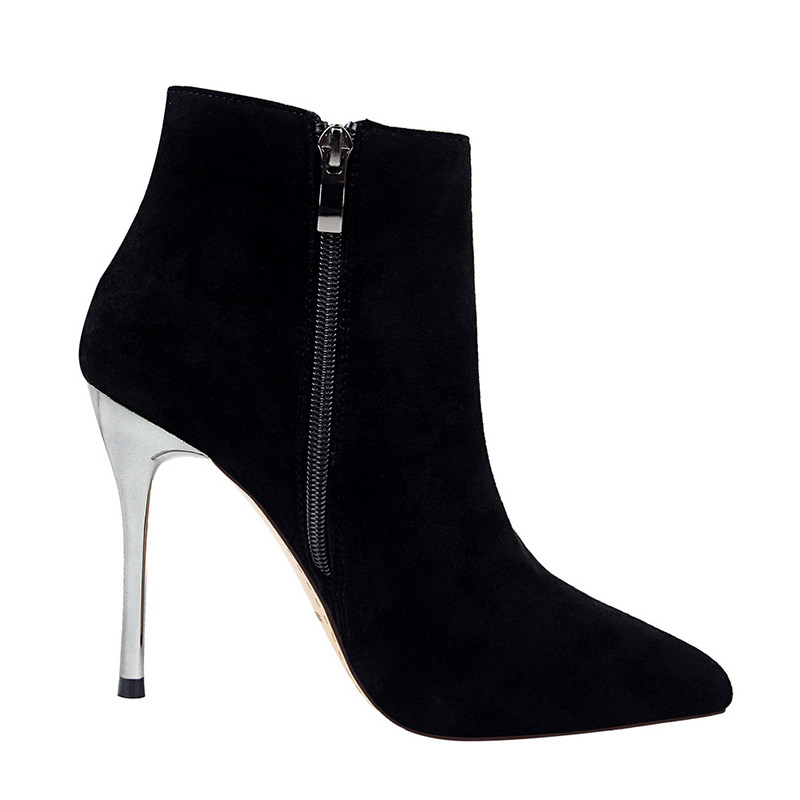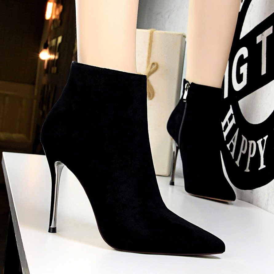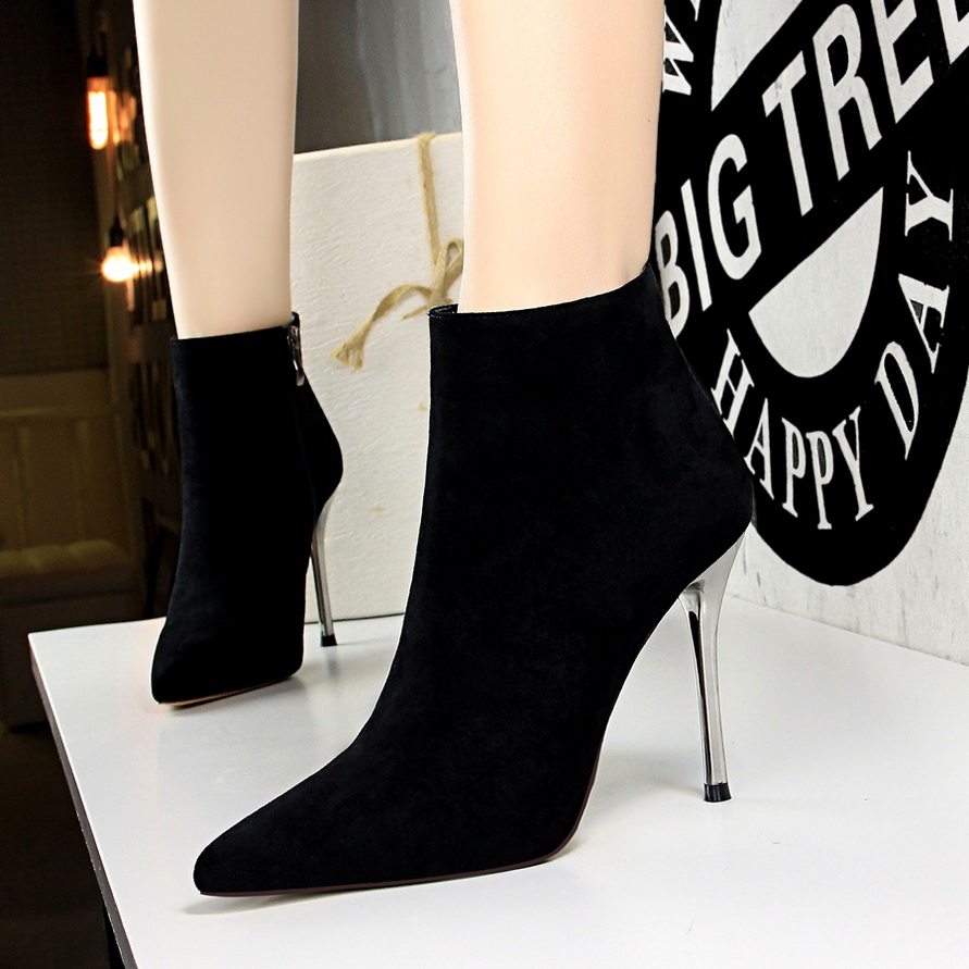 Черные короткие сапоги, обувь на высоком каблуке, ботильоны с заостренным носом, коллекция 2023, 10см