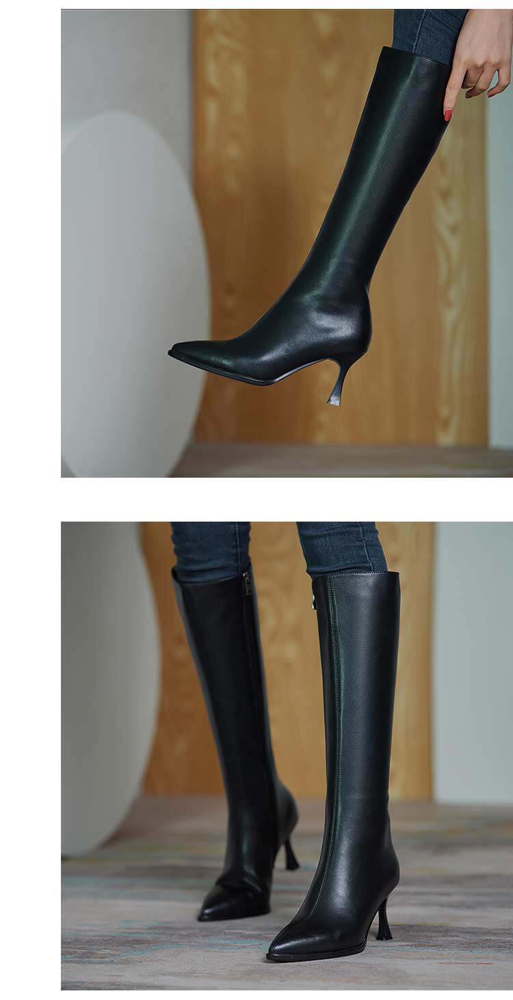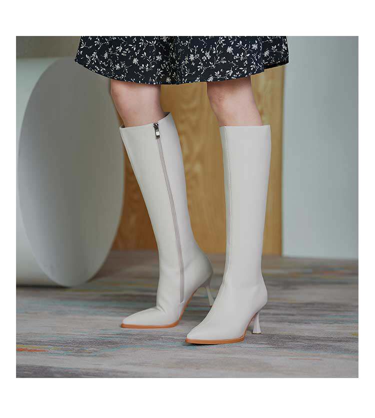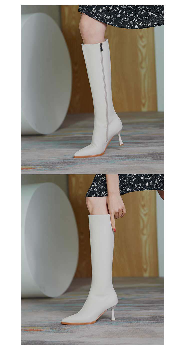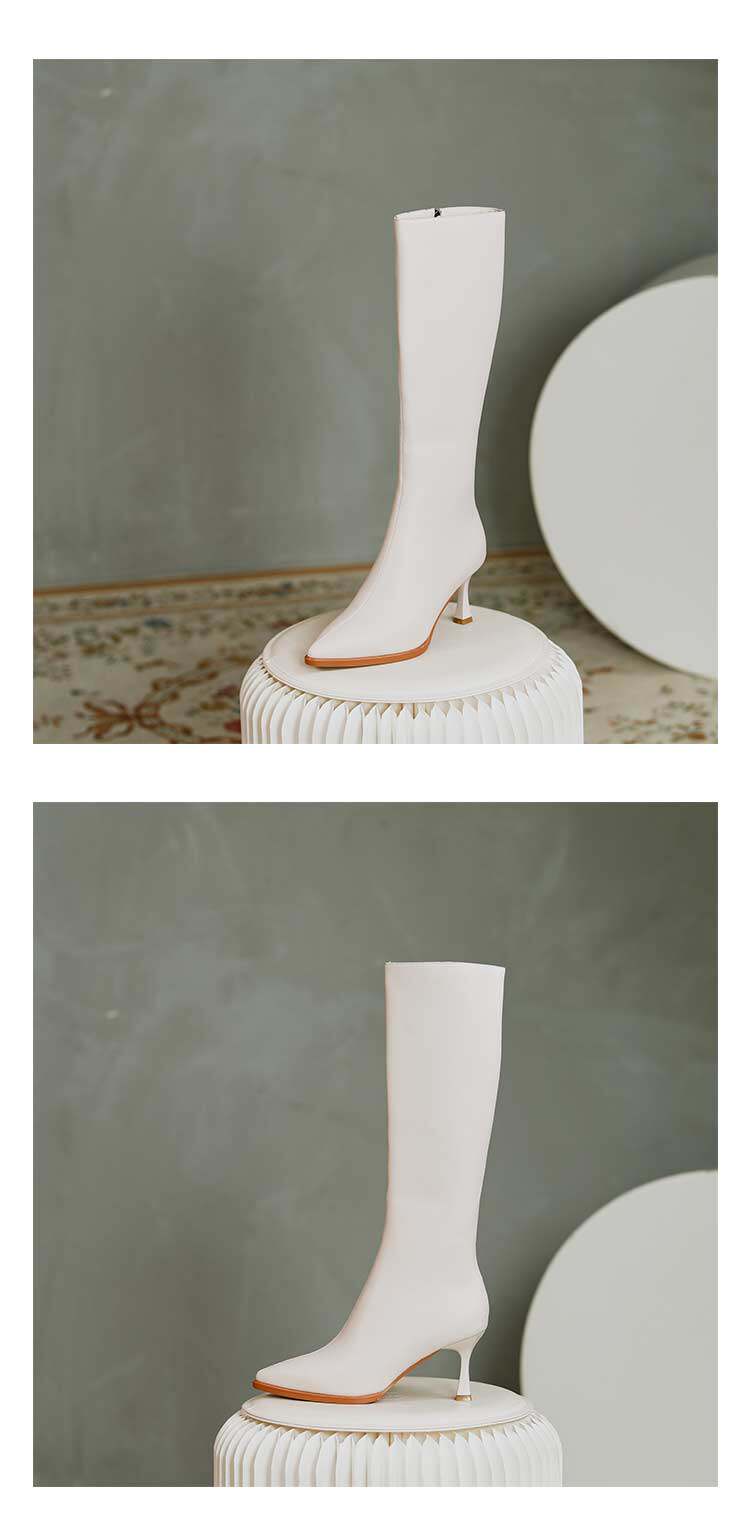 Белые высокие сапоги с заостренным носом на высоком каблуке, подходит для подростков, средней длины