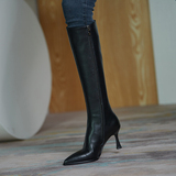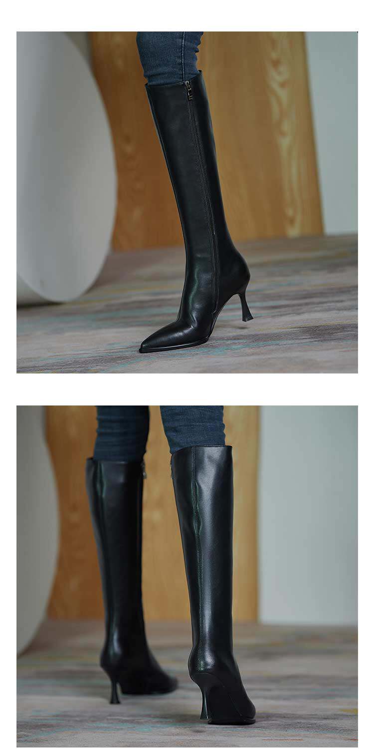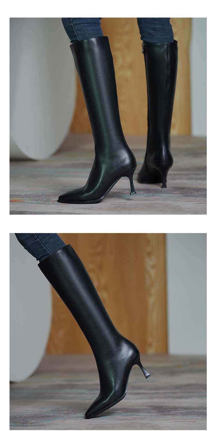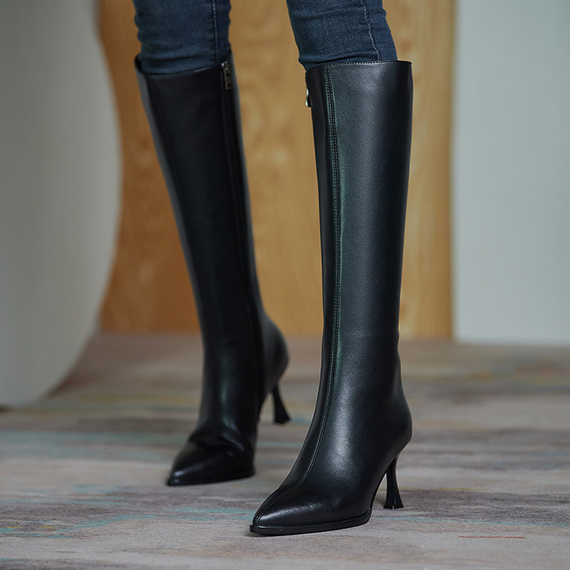 Белые высокие сапоги с заостренным носом на высоком каблуке, подходит для подростков, средней длины