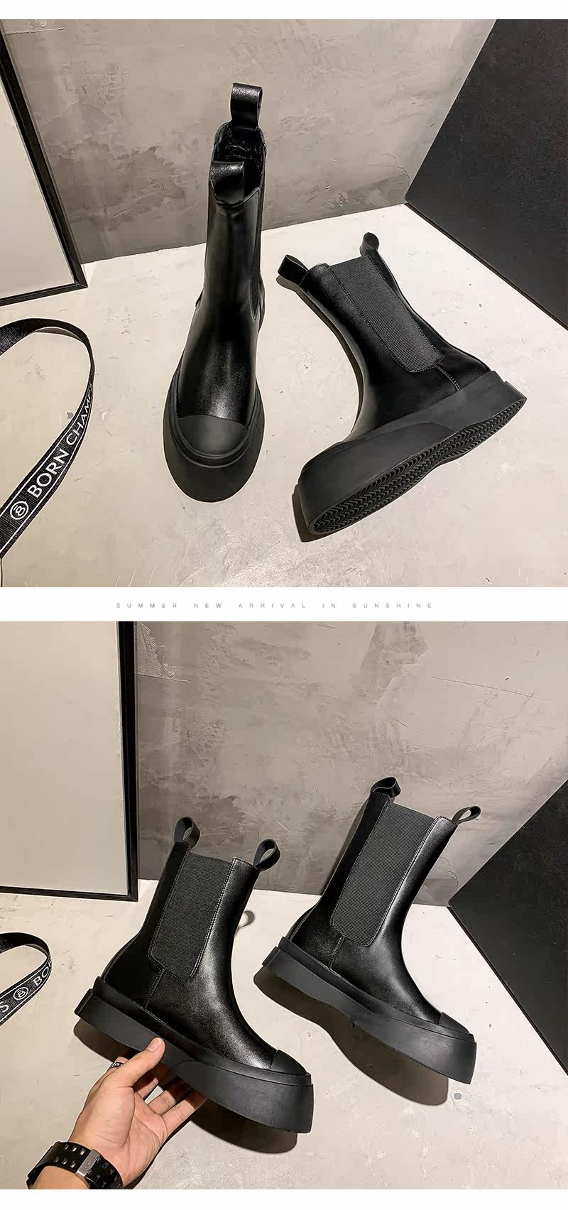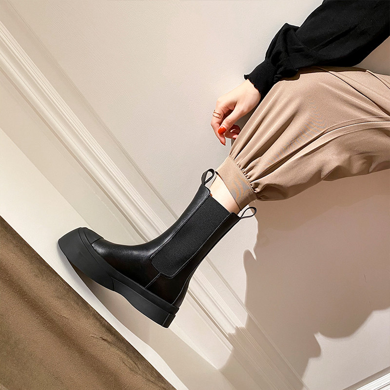 Martens, Tide, весенние универсальные короткие сапоги на платформе в английском стиле, ботинки, челси, в британском стиле, средней длины