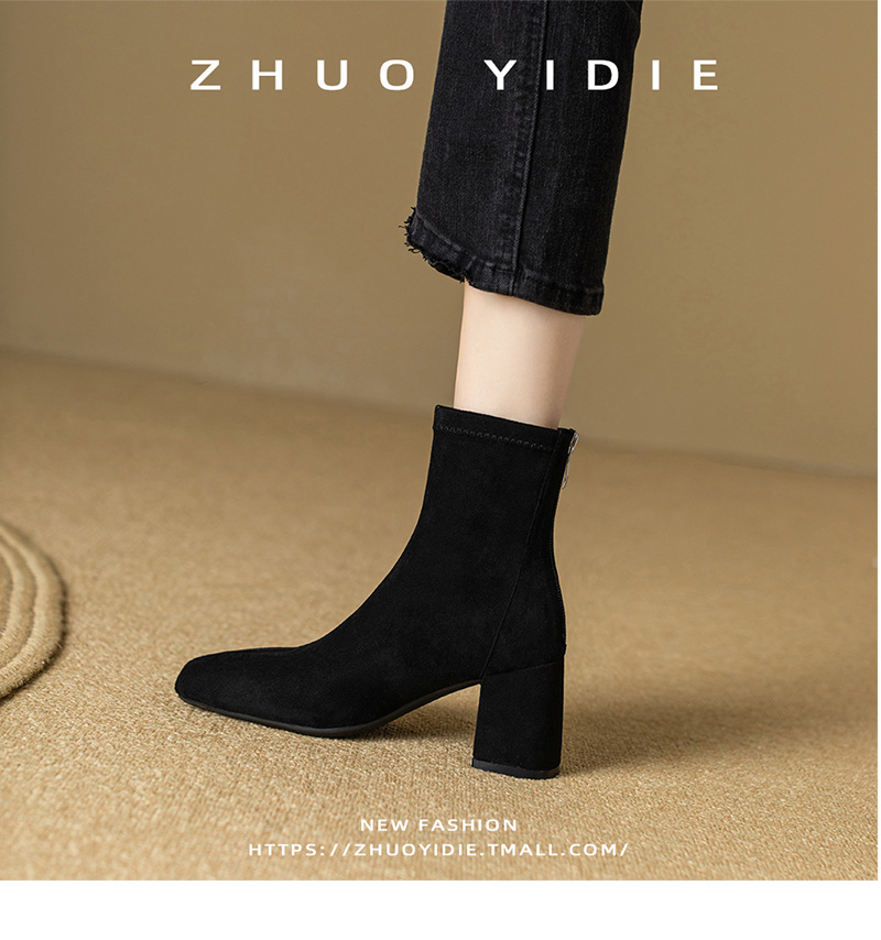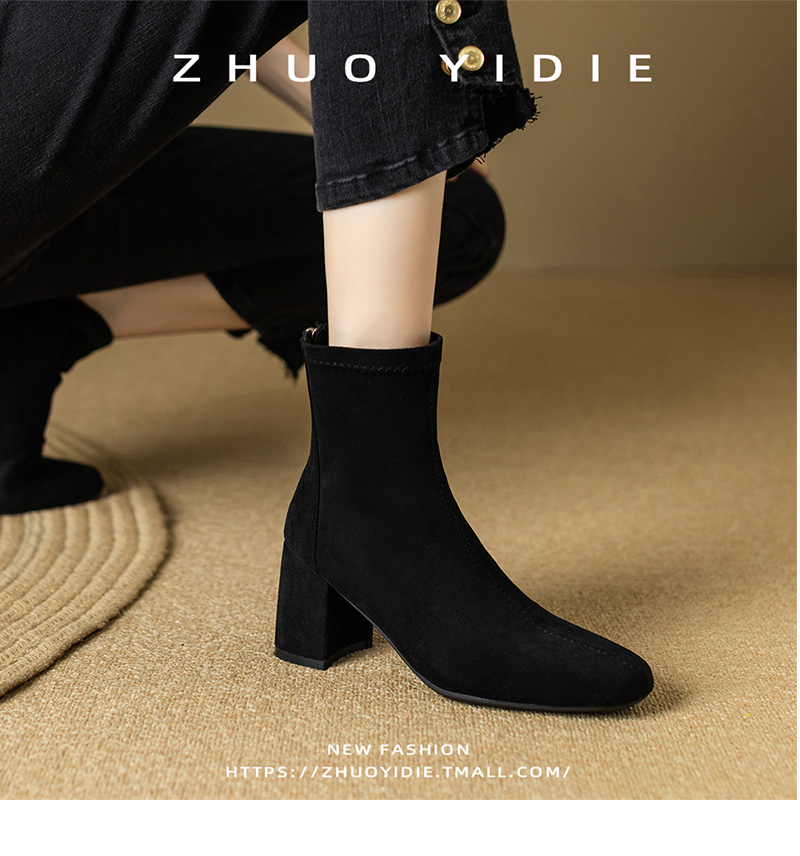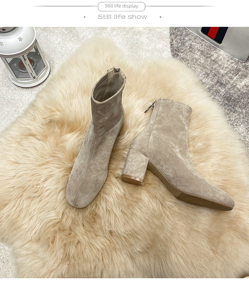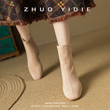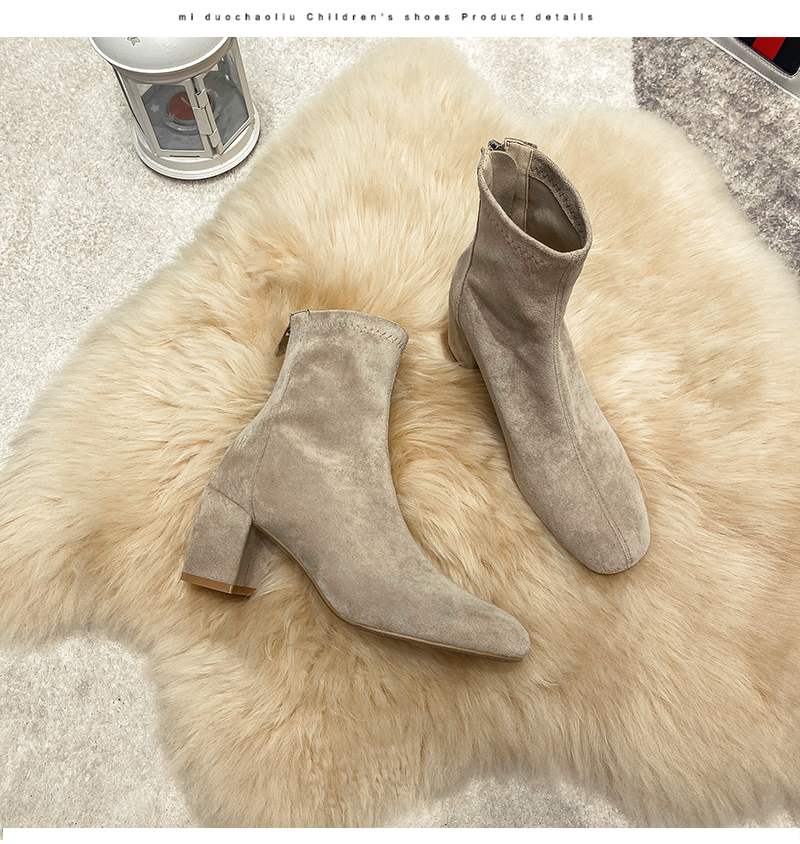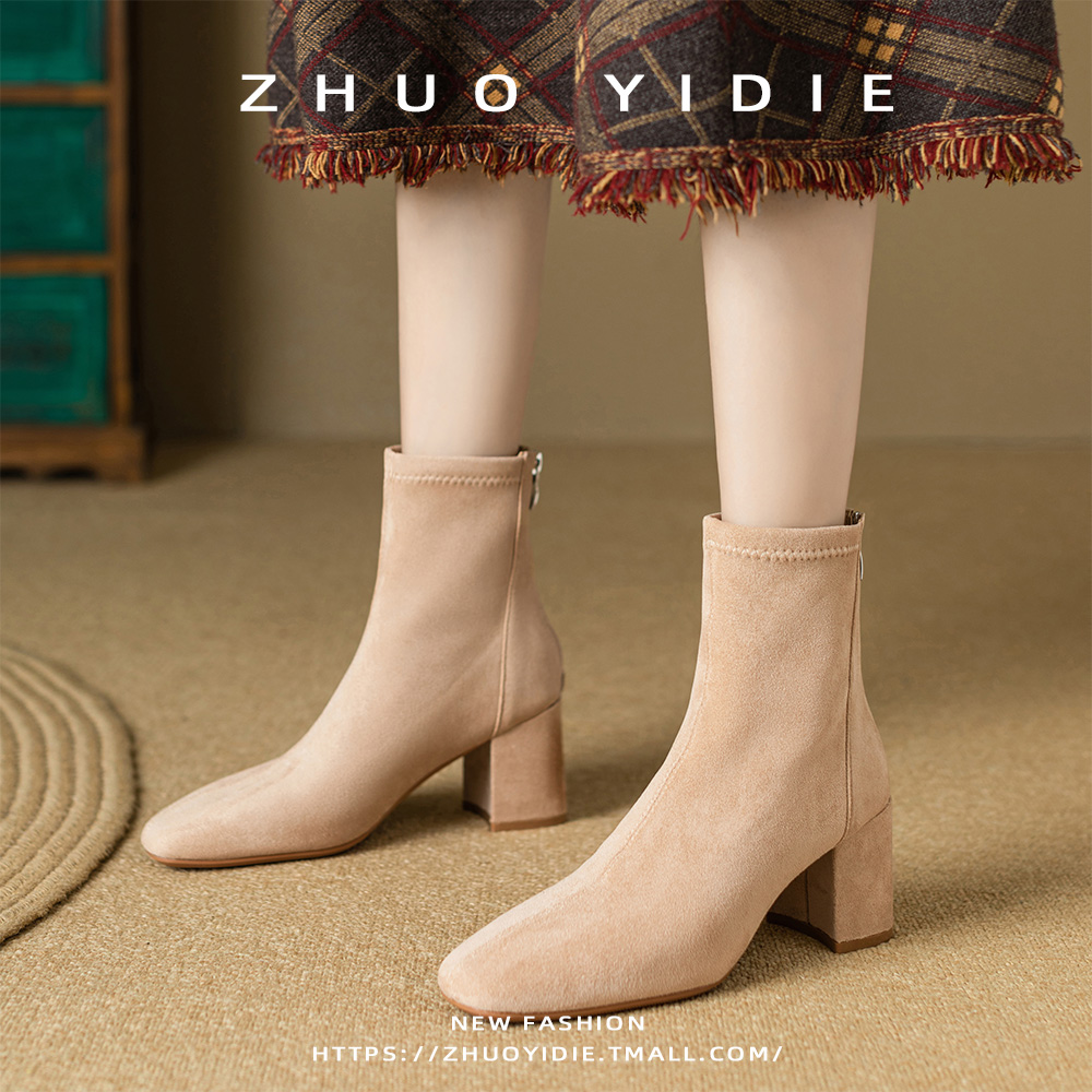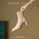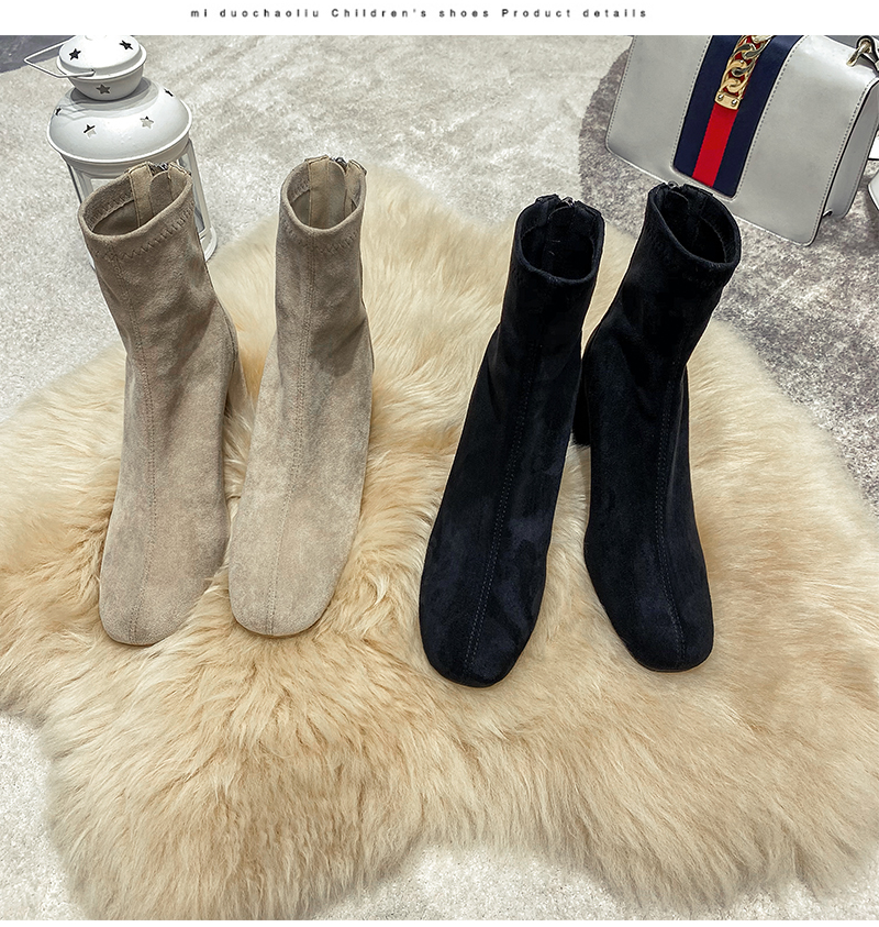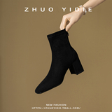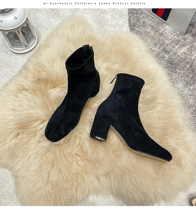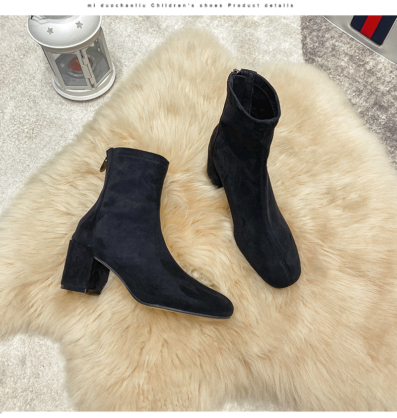 Купить продукты Новые бархатные осенние и зимние толстые каблуки короткие ботинки, средние каблуки, интернет-знаменитость, тонкие ботинки, задние обнаженные ботинки, замшевые французские женские ботинки