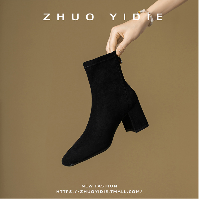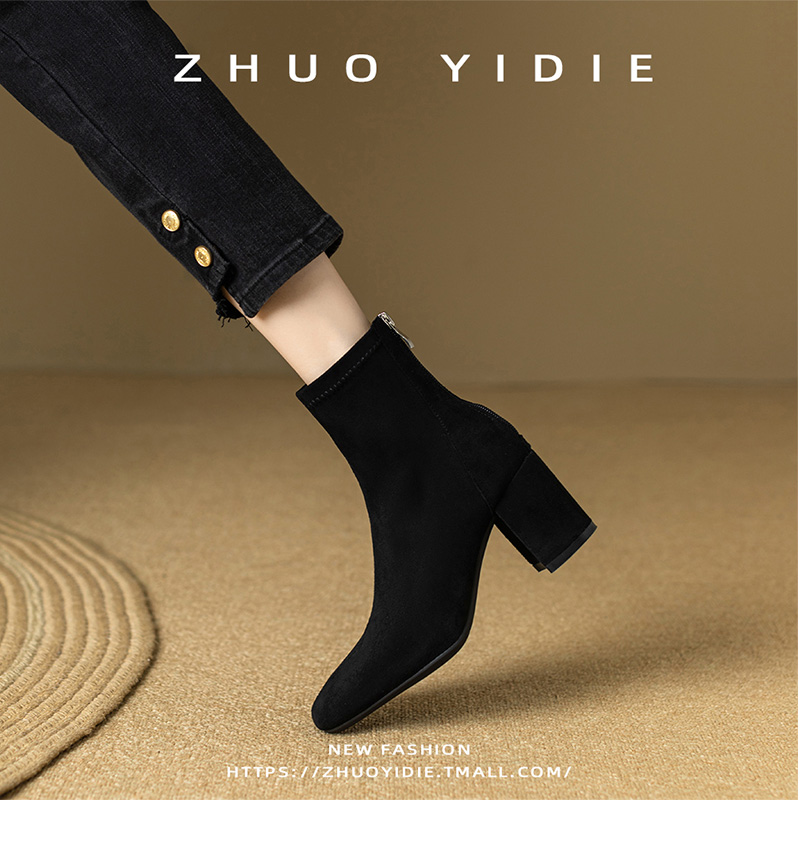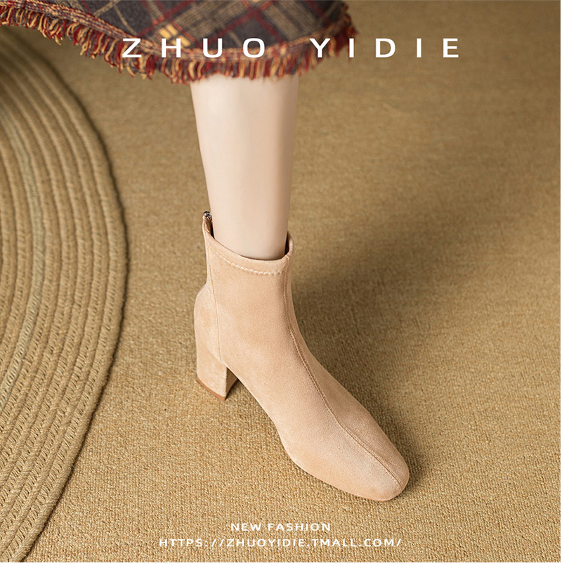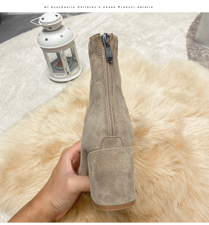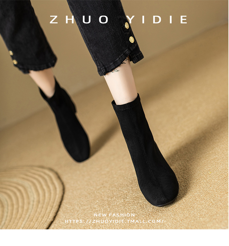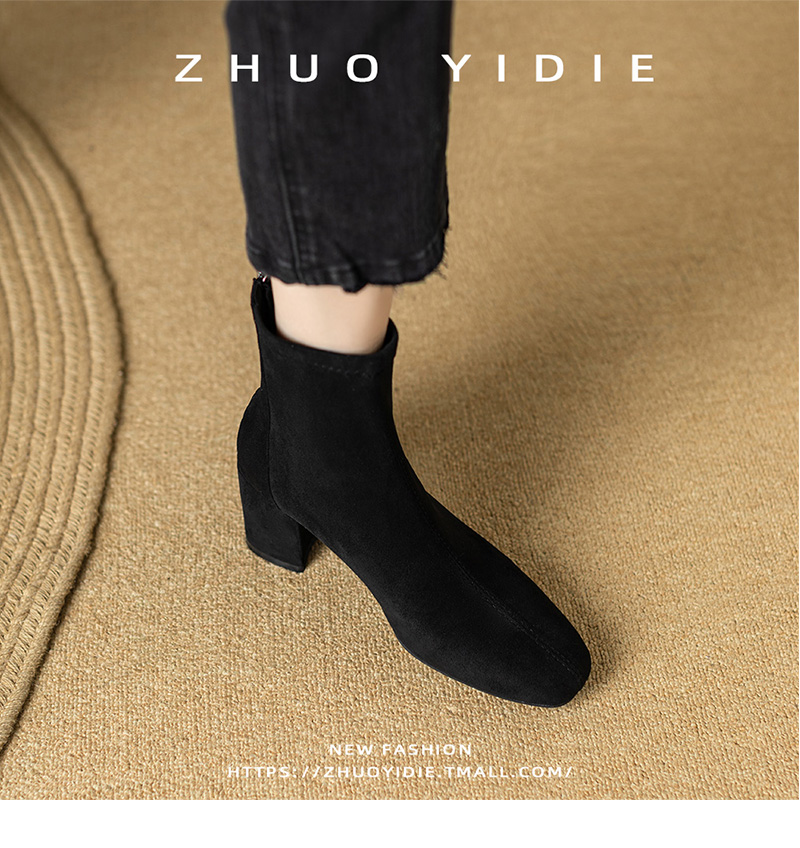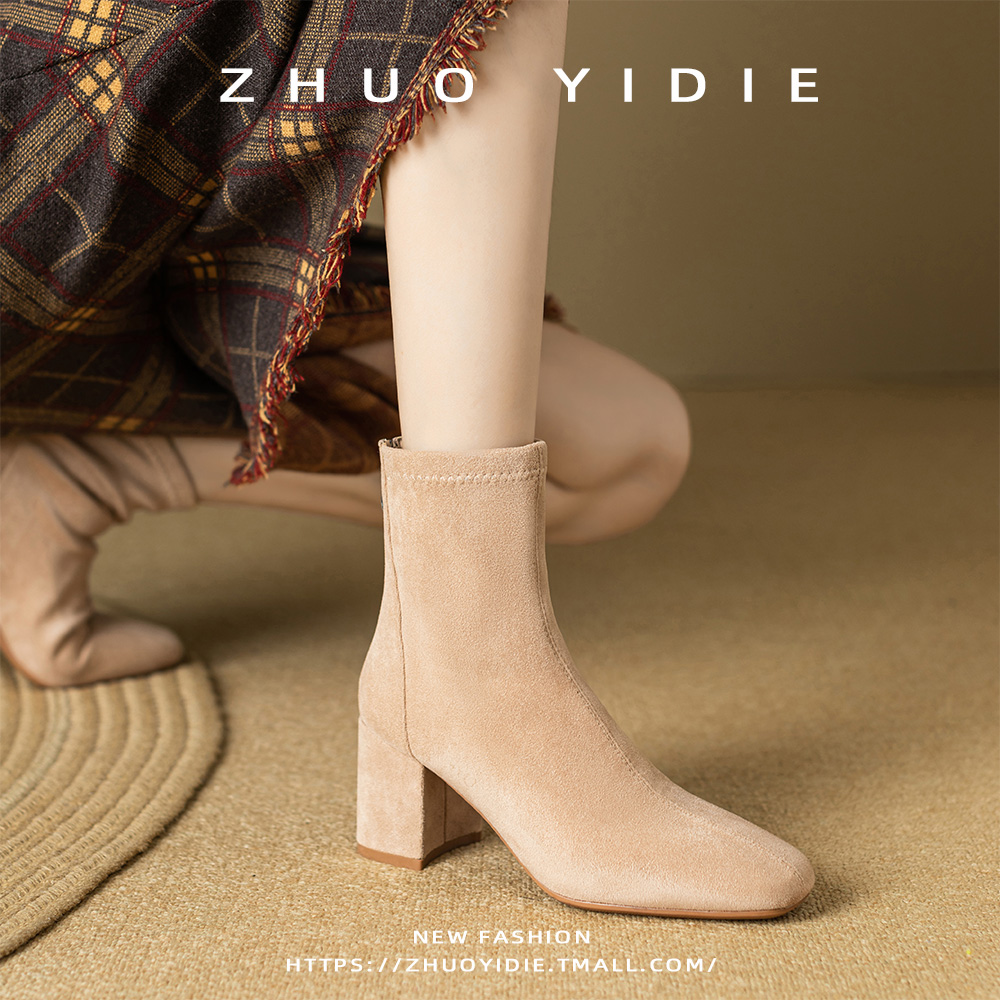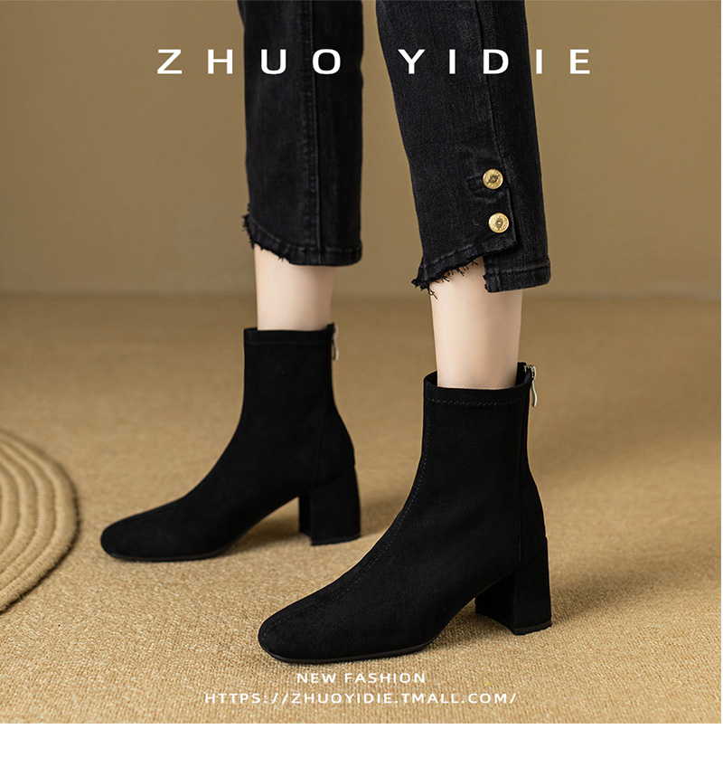 Купить продукты Новые бархатные осенние и зимние толстые каблуки короткие ботинки, средние каблуки, интернет-знаменитость, тонкие ботинки, задние обнаженные ботинки, замшевые французские женские ботинки
