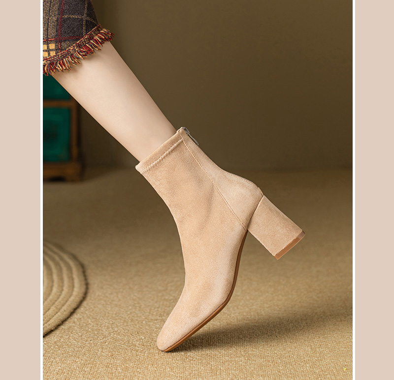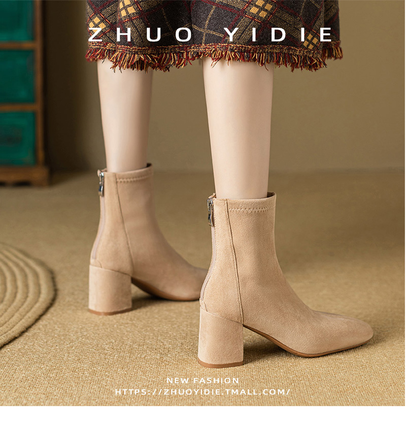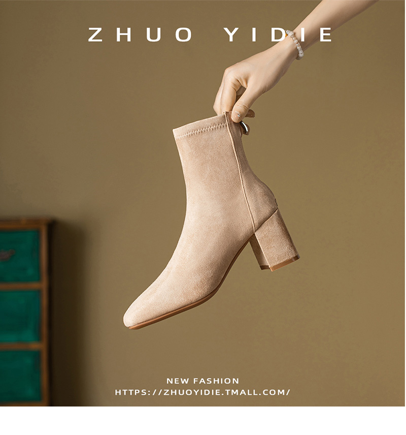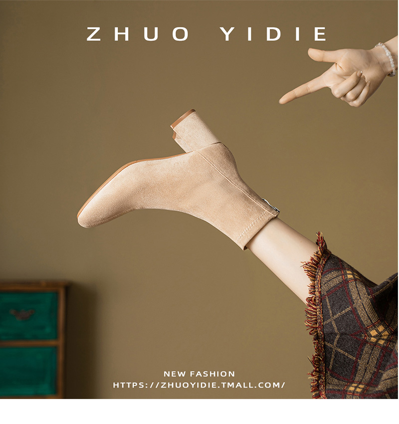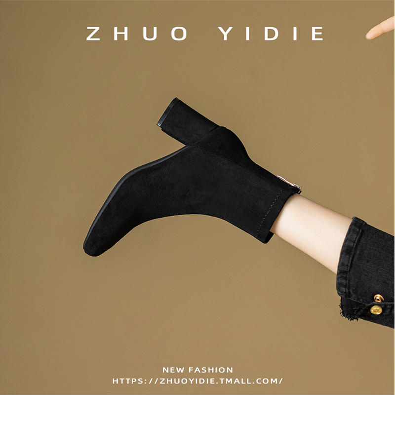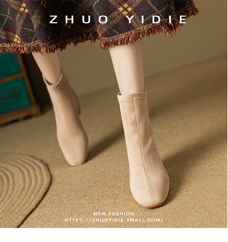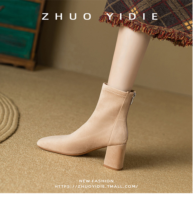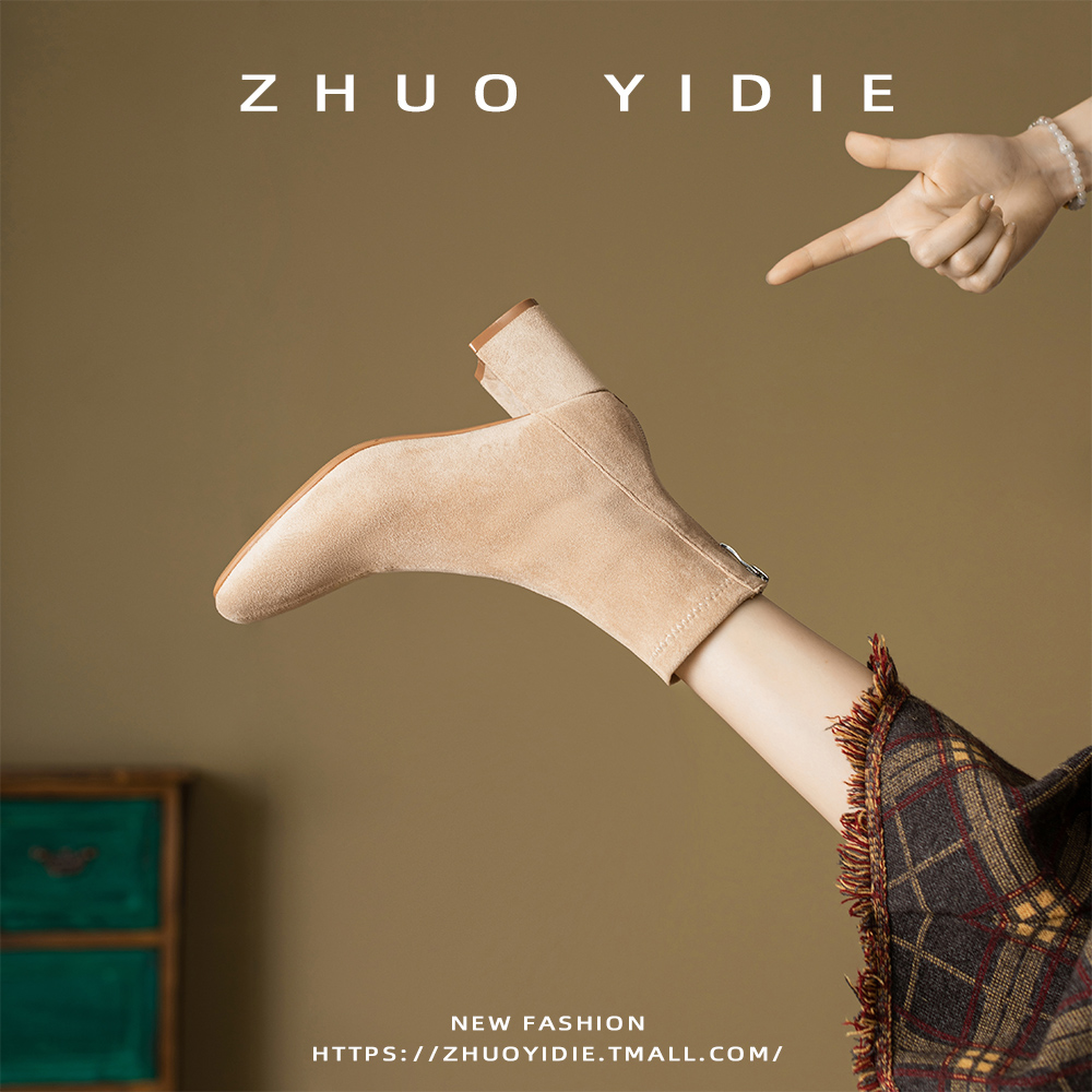 Купить продукты Новые бархатные осенние и зимние толстые каблуки короткие ботинки, средние каблуки, интернет-знаменитость, тонкие ботинки, задние обнаженные ботинки, замшевые французские женские ботинки