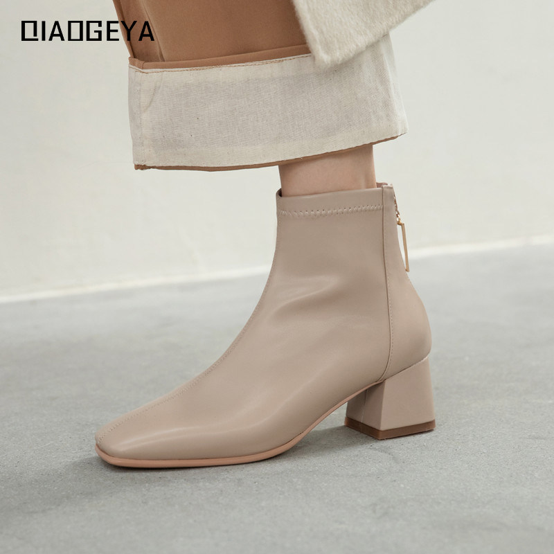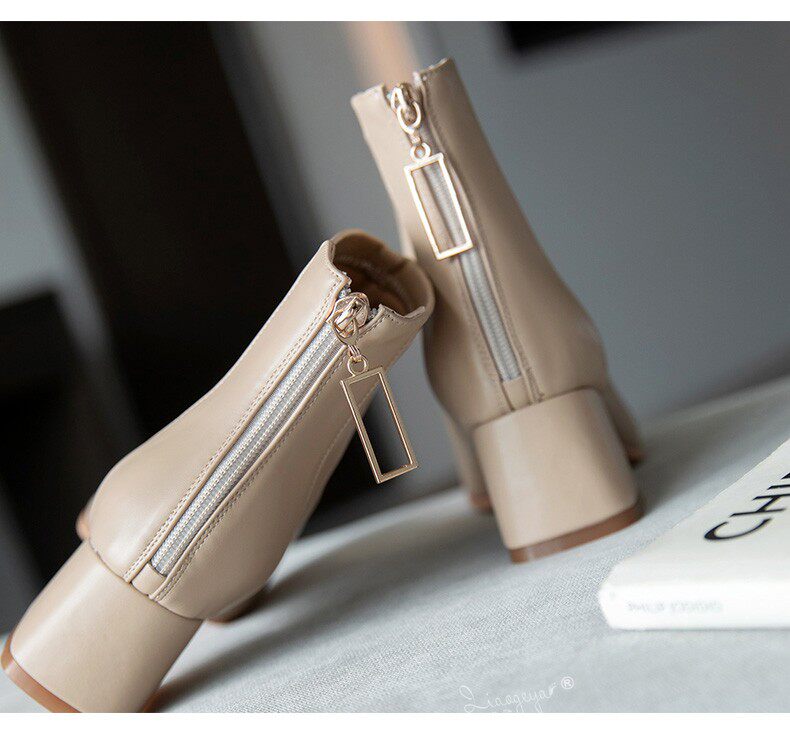 Martens, абрикосовые короткие сапоги, зимние туфли на высоком каблуке, ботильоны, из натуральной кожи