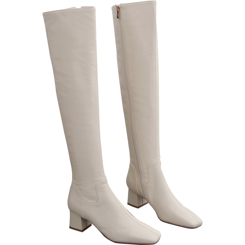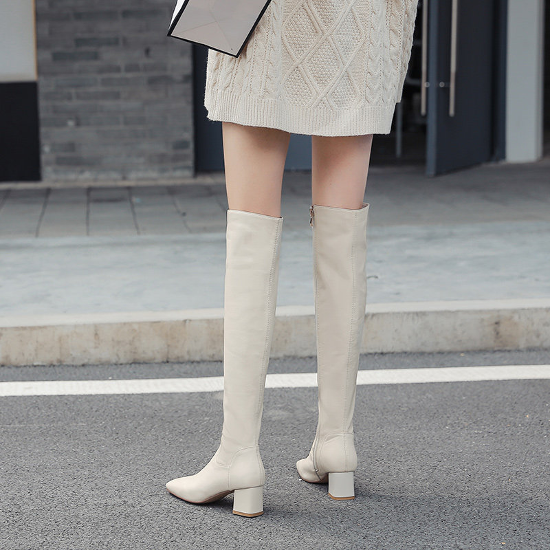 Белые высокие сапоги, ботинки на высоком каблуке, коллекция 2023, по фигуре, подходит для подростков