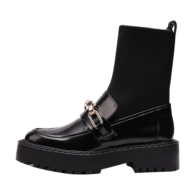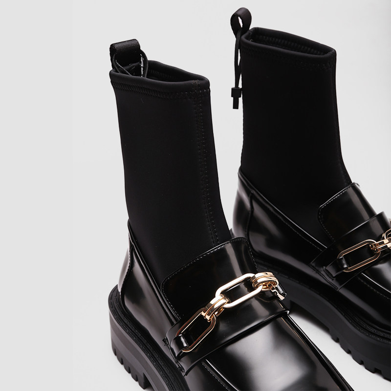 Трикотажные эластичные короткие сапоги, металлическая цепь на платформе, 2020, осенние