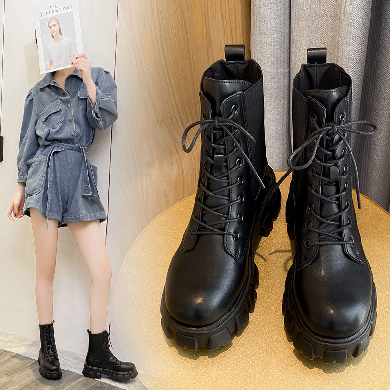 Martens, Tide, летние тонкие короткие сапоги на платформе в английском стиле, средней длины, в британском стиле