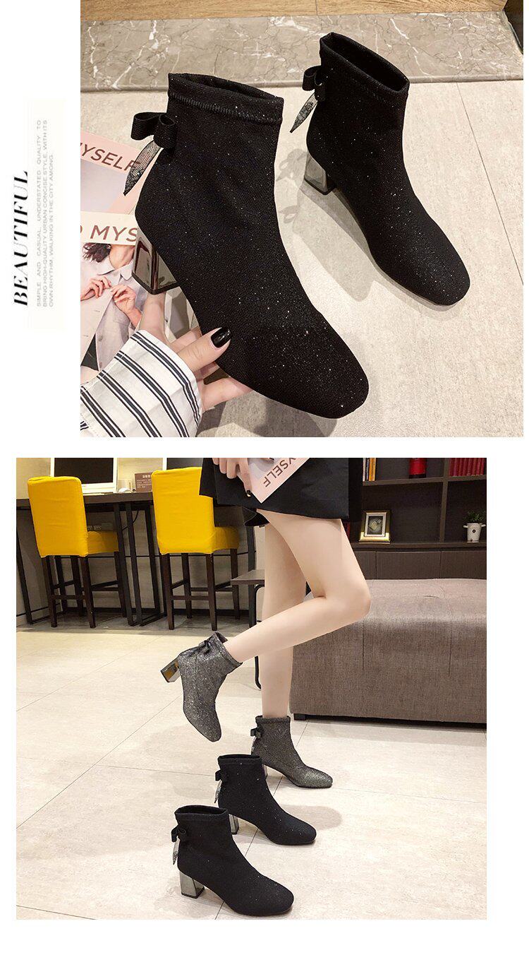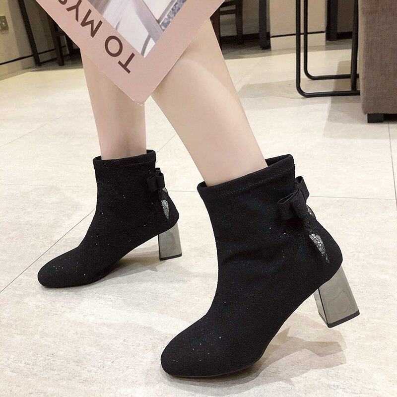 Милые короткие сапоги с бантиком, высокие ботинки, в корейском стиле, 2020, осенние, популярно в интернете