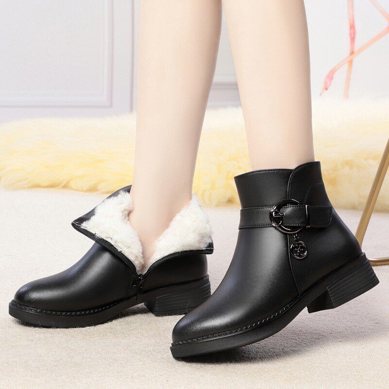 Демисезонная обувь для матери, короткие сапоги для кожаной обуви, удерживающие тепло ботинки, мягкая подошва, для среднего возраста