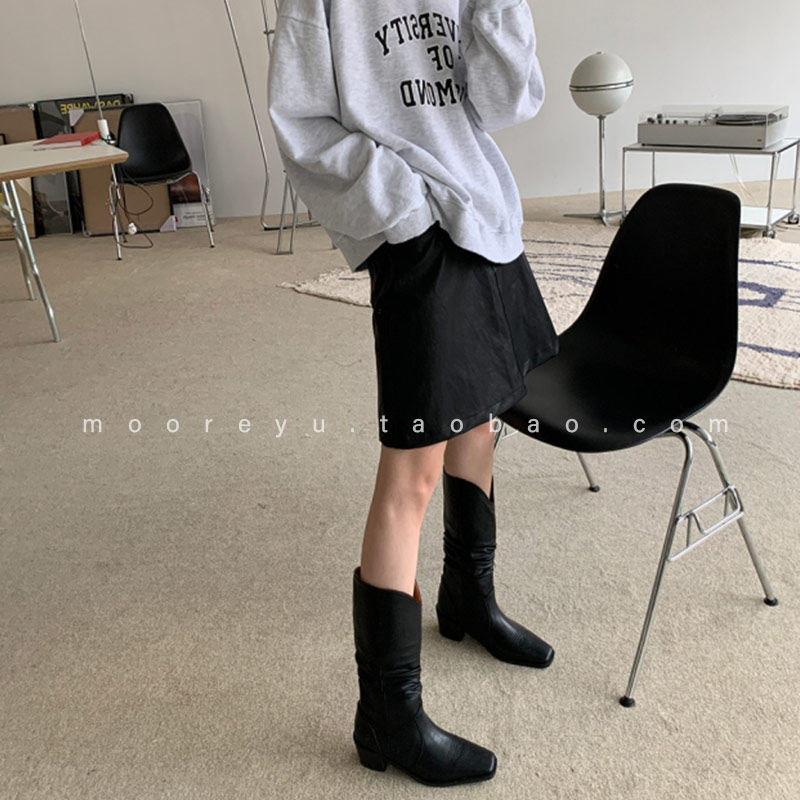 Южнокорейский товар, демисезонные туфли, джинсовые сапоги, средней длины