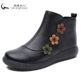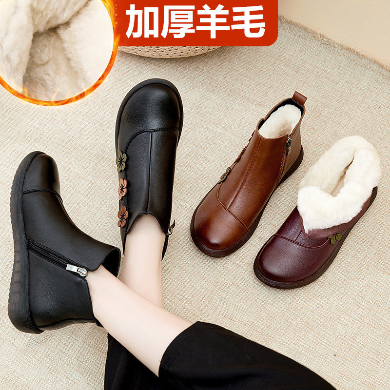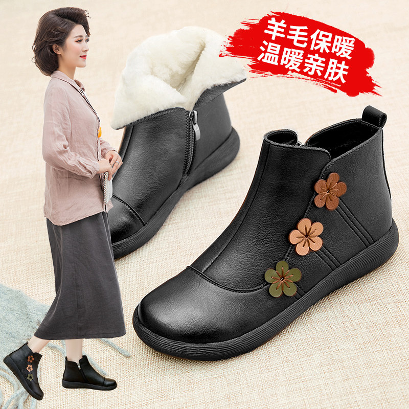 Удерживающие тепло зимние флисовые короткие сапоги для матери для кожаной обуви, большой размер, мягкая подошва, для среднего возраста