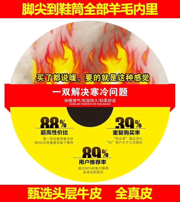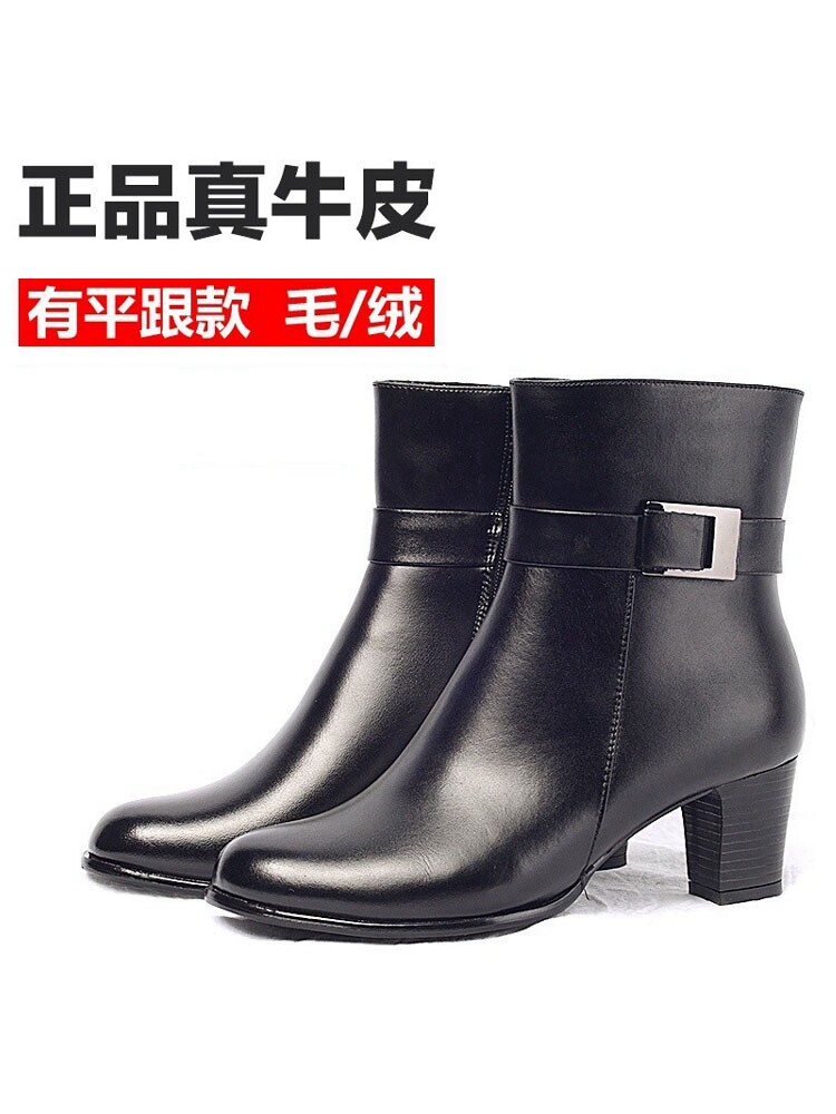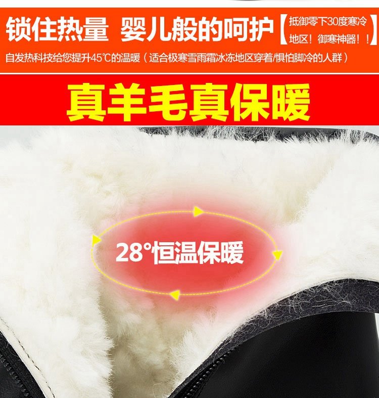 Зимние высокие флисовые удерживающие тепло сапоги для кожаной обуви с молнией, из натуральной кожи