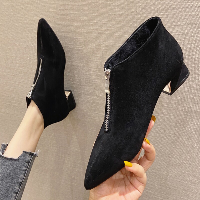 Универсальные короткие сапоги с заостренным носом с молнией, осенние, коллекция 2023, большой размер